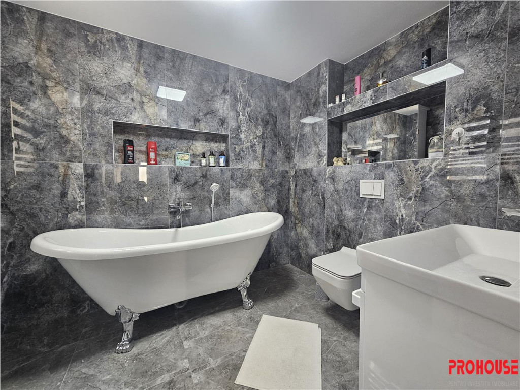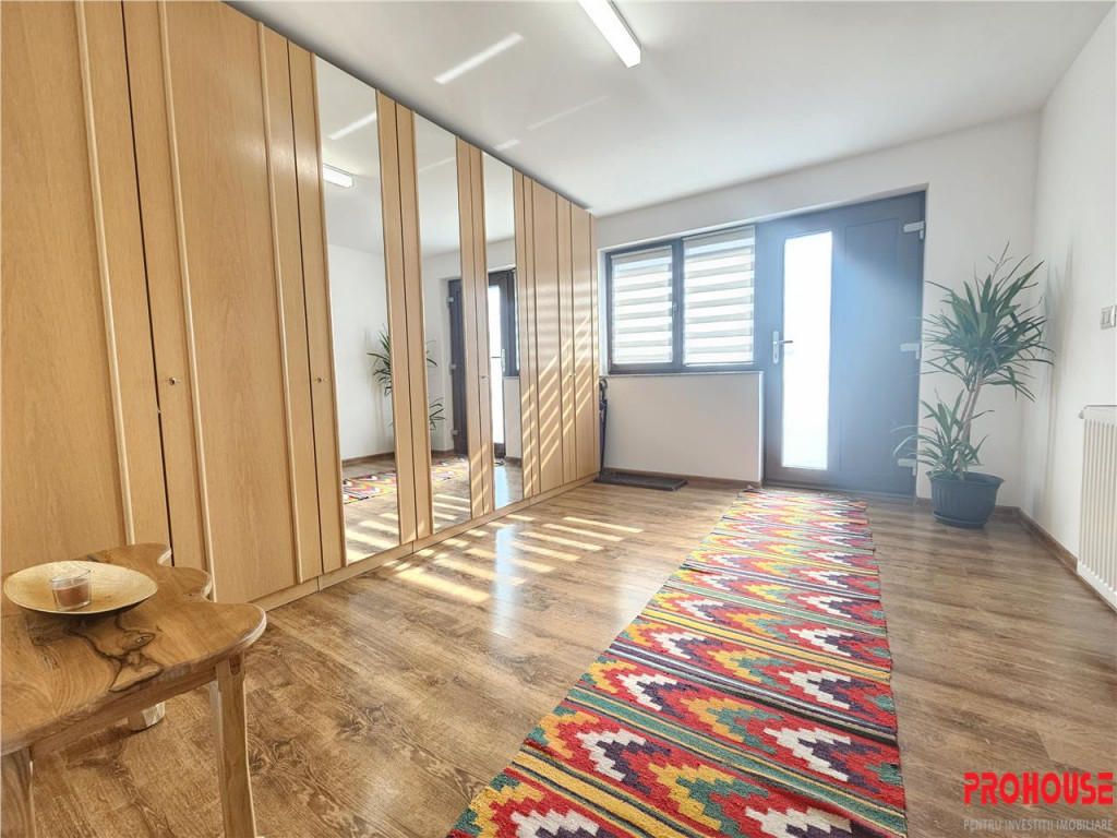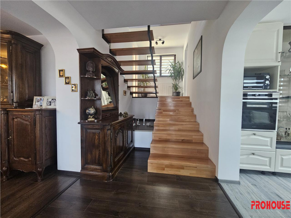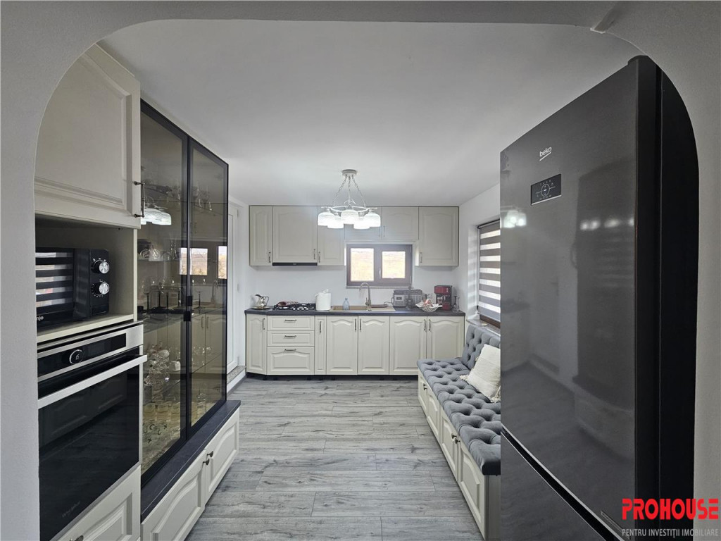 PROHOUSE propune spre vanzare, in exclusivitate, o proprietate compusa din 1 vila cu 3 nivele si o casa cu 1 nivel situate pe un teren intravilan in suprafata de 740mp. Imobilele sunt construite din caramida in anii 2000 si renovate total in 2024 cu materiale de cea mai buna calitate. Panorama excelenta si distanta relativ mica de centrul orasului (7 km, Magura Farbe) recomanda aceasta locatie ca resedinta permanenta. VILA cu 3 nivele are 230mp si este compartimentata astfel: Parter: 1 Living, 1 bucatarie cu camera tehnica,1 baie cu cada, terasa Mezanin: 2 dormitoare (birouri) cu balcon Etaj 1: 1 Dormitor mare, baie cu dus, terasa Proprietatea este racordata la toate utilitatile: curent, gaz, apa, canalizare. Accesul la proprietate se face doar de doi proprietari, pe un drum privat inchis cu o poarta cu telecomanda. CASA cu 1 nivel are 45mp si este compartimentata astfel: Parter: 1garaj 1beci Etaj: 1 Living cu acces la terasa, 1 dormitor, 1 bucatarie, 1 baie cu dus. Fiecare imobil este contorizat separat. Ambele cladiri se vand mobilate si utilate lux, asa cum reiese din fotografii. Pretul este negociabil, se accepta si variante (credit, schimb, etc.). Pentru vizionare si alte detalii nu ezitati sa ne contactati.