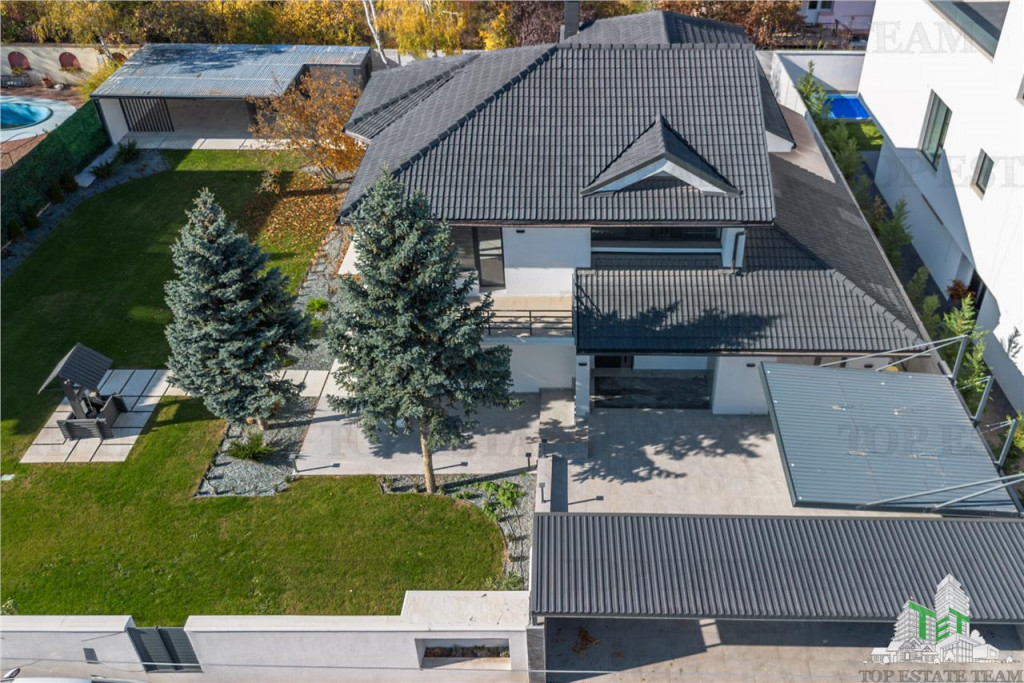 Va prezentam o vila individuala de vanzare situata in zona Erou Iancu Nicolae, foarte aproape de British School of Bucharest. Proprietatea dispune de o suprafata construita de 467 mp si o suprafata utila de 368 mp, oferind un spatiu generos si versatil, ideal atat pentru locuinta de familie, cat si pentru sediu de birouri sau spatiu de lucru modern. Caracteristici principale ale vilei: 7 camere spatioase, dintre care 6 dormitoare, finisate cu atentie pentru confort si relaxare 3 camere la subsol cu lumina naturala ndash; perfect adaptabile ca sala de sport, camera hobby, depozit sau spatiu tehnic Constructie solida din 2003, complet renovata in 2024, cu finisaje moderne Structura din caramida si beton armat, pentru siguranta si durabilitate Teren si curte: Teren generos de 1031 mp, cu deschidere de 33 ml Curte libera de 837 mp, ideala pentru activitati in aer liber, zona verde si relaxare Curte impartita functional, cu foisor generos si posibilitatea de amenajare piscina Amprenta la sol: 194 mp, echilibru perfect intre spatiu construit si spatiu liber Detalii interioare si dotari: 5 bai pentru confortul unei familii numeroase sau al unui spatiu de birouri 2 bucatarii ndash; una complet mobilata si utilata, inchisa, iar a doua la subsol, ce deserveste curtea englezeasca Feronerie din aluminiu termopan pentru izolatie fonica si termica Centrala termica, calorifere si izolatie exterioara pentru eficienta energetica Finisaje elegante: podele din marmura si granit, pereti lavabili, plansee din beton armat 2 balcoane unde va puteti bucura de momente de relaxare si de priveliste Avantaje si destinatii posibile: Aceasta vila se potriveste perfect atat pentru locuinta premium intr-una dintre cele mai exclusiviste zone ale Capitalei, cat si pentru spatiu de birouri, clinica sau activitati profesionale ce necesita camere multiple si compartimentare flexibila.