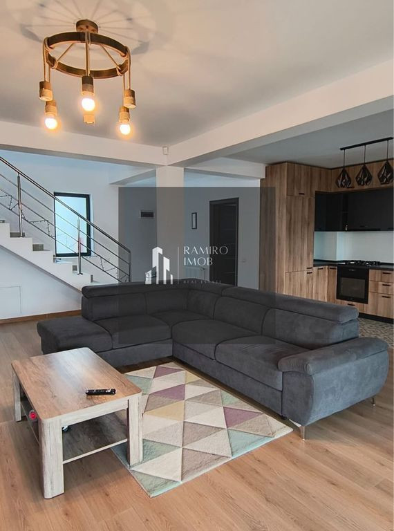•	Parter: living + dining open-space, bucatarie moderna, baie, camera tehnica