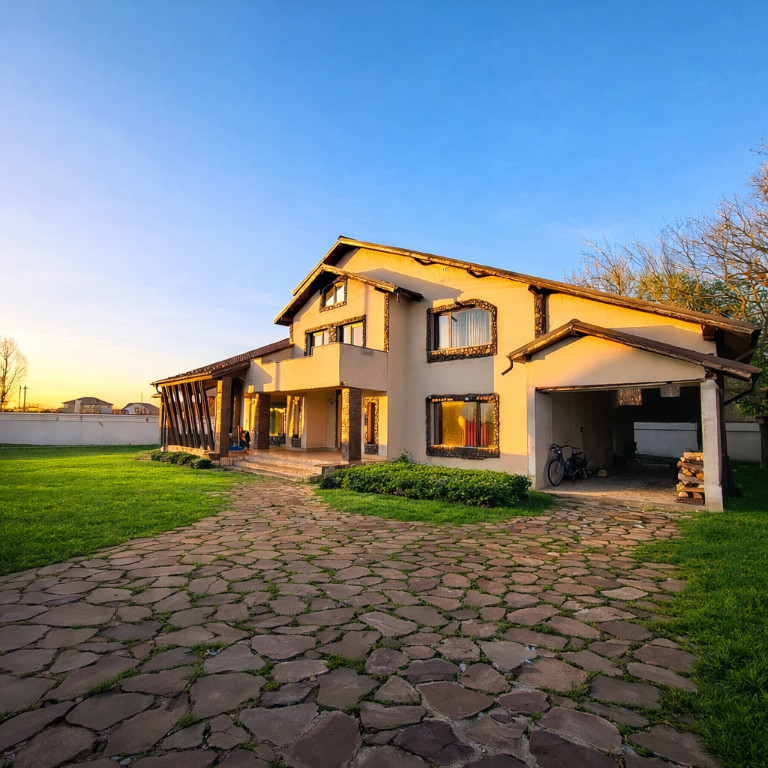 Într-o zonă selectă a comunei Vânători, la doar 3 km de Focșani, pe strada principală și cu acces rapid la autostradă (5 minute), se află această vilă impresionantă, concepută pentru un stil de viață rafinat, în armonie cu natura. Proprietatea se remarcă prin arhitectură elegantă, spații generoase, materiale nobile și o amplasare privilegiată, având în imediata vecinătate pădurea și Crângul Petrești un cadru natural ideal pentru relaxare, intimitate și viață de familie. Arhitectură & Compartimentare - Parterul este gândit ca un spațiu fluid, luminos și primitor: - Living spectaculos cu zonă de dining și bucătărie open-space - Dormitor matrimonial cu dressing dedicat - Baie principală cu cadă îngropată, finisaje premium - Baie de serviciu spațioasă, cu duș - Cameră tehnică și acces către un beci generos, ideal pentru vinuri sau depozitare Etajul oferă intimitate și confort: - 3 dormitoare ample, dintre care 2 cu dressing și balcon privat - Living lounge dedicat relaxării - Terasă balcon cu deschidere largă - Baie elegantă - Mansarda, cu o suprafață de aproximativ 80 mp, poate fi personalizată ca: - sală de fitness - spațiu de joacă - home cinema - zonă de relaxare sau depozitare premium - Exterior & Facilități - Terasă acoperită, ideală pentru evenimente private - Piscină (structură existentă, nefinalizată posibilitate de personalizare) - Garaj - Bucătărie de vară cu barbeque - Curte complet împrejmuită cu gard solid din beton, oferind intimitate și siguranță Specificații tehnice - Construcție solidă din cărămidă - Încălzire în pardoseală în întreaga locuință - Parchet din lemn masiv - Suprafață teren: 953 mp - Deschidere la strada 29 ml - Suprafață construită la sol: 263 mp - Suprafață construită desfășurată: 457 mp Concluzie Această vilă nu este doar o locuință, ci o declarație de stil și statut, dedicată celor care caută confort absolut, intimitate, calitate fără compromis și proximitatea naturii, fără a renunța la accesul rapid către oraș. Proprietate potrivită pentru reședință familială premium sau investiție de prestigiu. HOUSE AVANTAJ Agenția ta imobiliară din Focșani Oferim servicii complete: vânzări, închirieri, certificate energetice, evaluări imobiliare, consultanță credite, întocmire documente cadastrale și funciare etc. Doriți să vizionați locuința? Programați o vizită chiar astăzi !