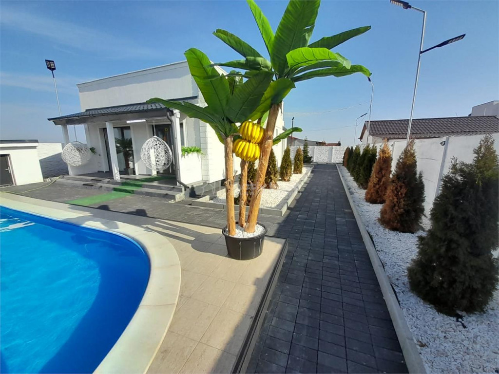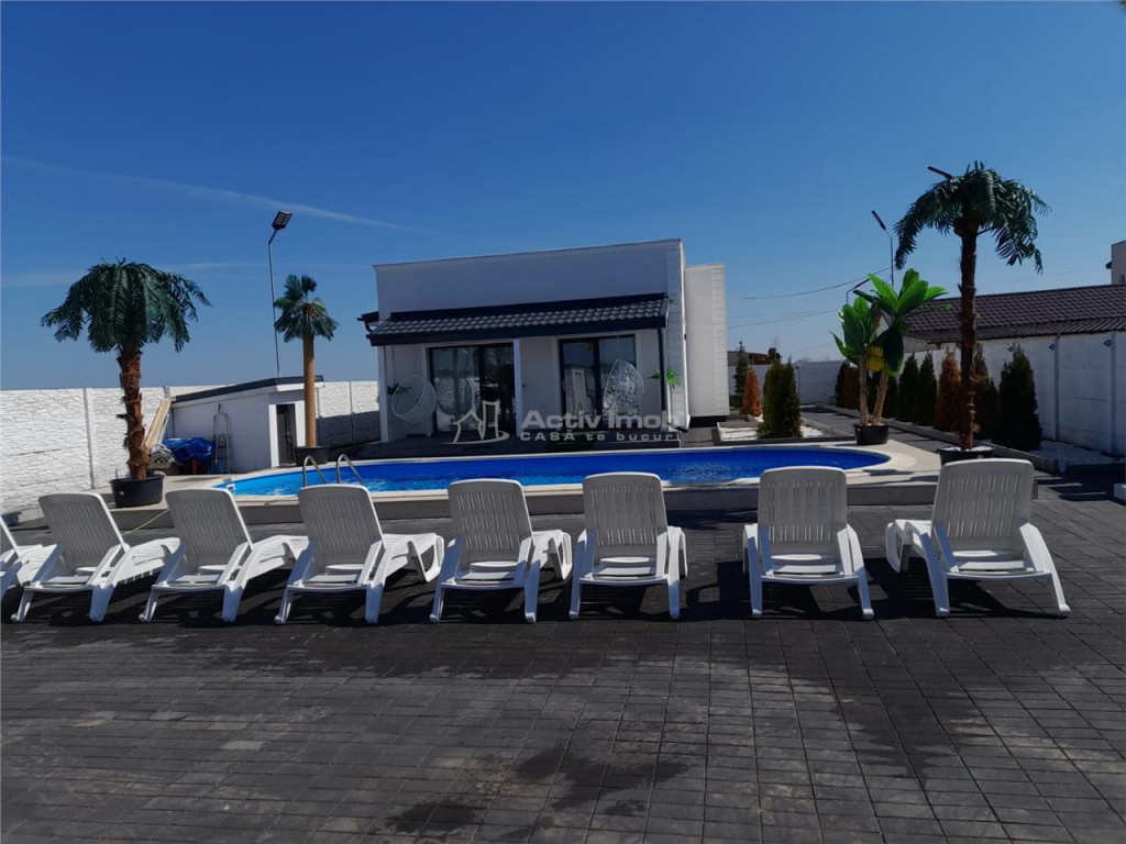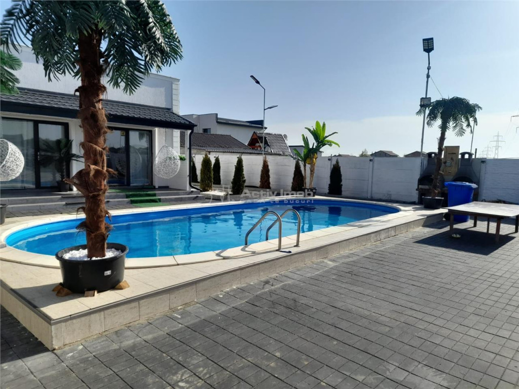 BENEFICII PENTRU CLIENTII ACESTEI OFERTE: Vila 4 camere situata in comuna Berceni Teren 1950mp Poate fi folosita pentru locuit, pentru organizat evenimente, sau inchiriere pentru evenimente Piscina exterioara Gratar Foisor spatios mobilat si utilat complet 6 locuri parcare in curte Teren de sport Mobilata si utilata complet, inclusiv mobilier de exterior, exact cum reiese din fotografii Curte amenajata. Supraveghere video de la distanta Doua bai in interiorul vilei, plus doua grupuri sanitare exterioare