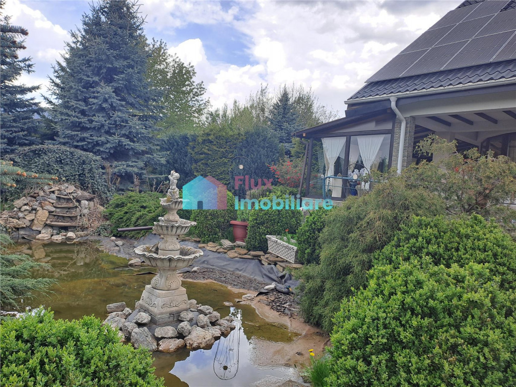 Flux Imobiliare va propune spre vanzare o proprietate situata in Scheia, in zona deosebita si usor accesibila. Proprietatea se compune din casa construita pe 3 niveluri (cu suprafata utila de 350 mp) si teren cu suprafata de 2000 mp, imprejmuit in totalitate. Imobilul este construit din zidarie de bca, cu structura de rezistenta din stalpi si grinzi din beton armat, planseu peste parter din beton armat si din lemn la mansarda si are tamplarie din pvc cu geam termopan. Acoperisul este din structura de lemn cu invelitoare din tabla Lindab. Compartimentarea imobilului: Parter (suprafata construita 186 mp): hol, living, bucatarie, dormitor, baie de serviciu, debara, garaj si terasa cu suprafata de aprox 80 mp, inchisa partial. Sub garaj este construit beciul. Etaj (suprafata construita 167 mp): hol, 3 dormitoare (din care unul cu balcon), 2 bai, debara. Mansarda: hol si 2 dormitoare. Casa este independenta energetic, fiind prevazuta cu panouri fotovoltaice, incalzirea este asigurata cu o centrala termica pe combustibil solid, are apa si canalizare in sistem propriu, dar reteaua de apa si canalizare a localitatii este la limita proprietatii (la strada). Curtea interioara este amenajata cu alei pavate, gazon, arbusti ornamentali, pomi fructiferi si iaz artificial cu pesti ornamentali. Pretul este 600.000 euro negociabil.
