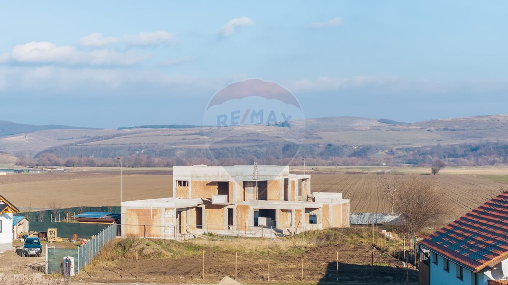 Sunt case care se cumpără pentru ce sunt. Și sunt case care se aleg pentru ce pot deveni. Această locuință unifamilială, situată pe un teren generos de 847 mp, într-o zonă liniștită - Poiana Craitelor - Bod, este gândită pentru o familie care își dorește spațiu, lumină naturală și libertatea de a-și pune amprenta personală asupra fiecărui detaliu. Construită în stadiul „la roșu”, casa oferă baza solidă a unui proiect arhitectural contemporan și șansa rară de a transforma un plan bine gândit într-un acasă exact așa cum ți-l imaginezi. La parter, zona de zi a fost concepută ca un spațiu deschis, luminos, cu vitrări ample și legătură directă cu terasa și grădina — locul perfect pentru dimineți liniștite și seri petrecute cu prietenii. - living generos - dining integrat în bucătărie, cu spațiu de depozitare - birou / cameră de oaspeți - baie - spălătorie -uscătorie - garaj dublu închis, cu spațiu de depozitare și cămară, cu acces direct în casă În spatele casei, proiectul prevede o zonă de relaxare, cu foișor și pergolă, completată de o baie dedicată - un detaliu care face diferența pentru serile de vară, grătare sau momentele petrecute în grădină. Etajul este gândit ca un refugiu personal, separat de agitația zilnică: - dormitor matrimonial cu dressing și baie proprie - un dormitor secundar cu baie proprie - spațiu de depozitare pe holul comun - acces către terase și balcoane circulate Date tehnice - Regim de înălțime: Parter + Etaj - Suprafață locuibilă: 161,31 mp - Suprafață construită desfășurată: 289,51 mp - POT: 27,23%, CUT: 0,40 - Avize obținute pentru branșamentele de apă, gaz și electricitate – un pas important deja rezolvat pentru viitorul proprietar. Aceasta nu este doar o casă „la roșu”. Este un început pentru cineva care își dorește o locuință modernă, pe un teren generos, într-un cadru liniștit, aproape de oraș, dar suficient de departe cât să simtă că are spațiul său.