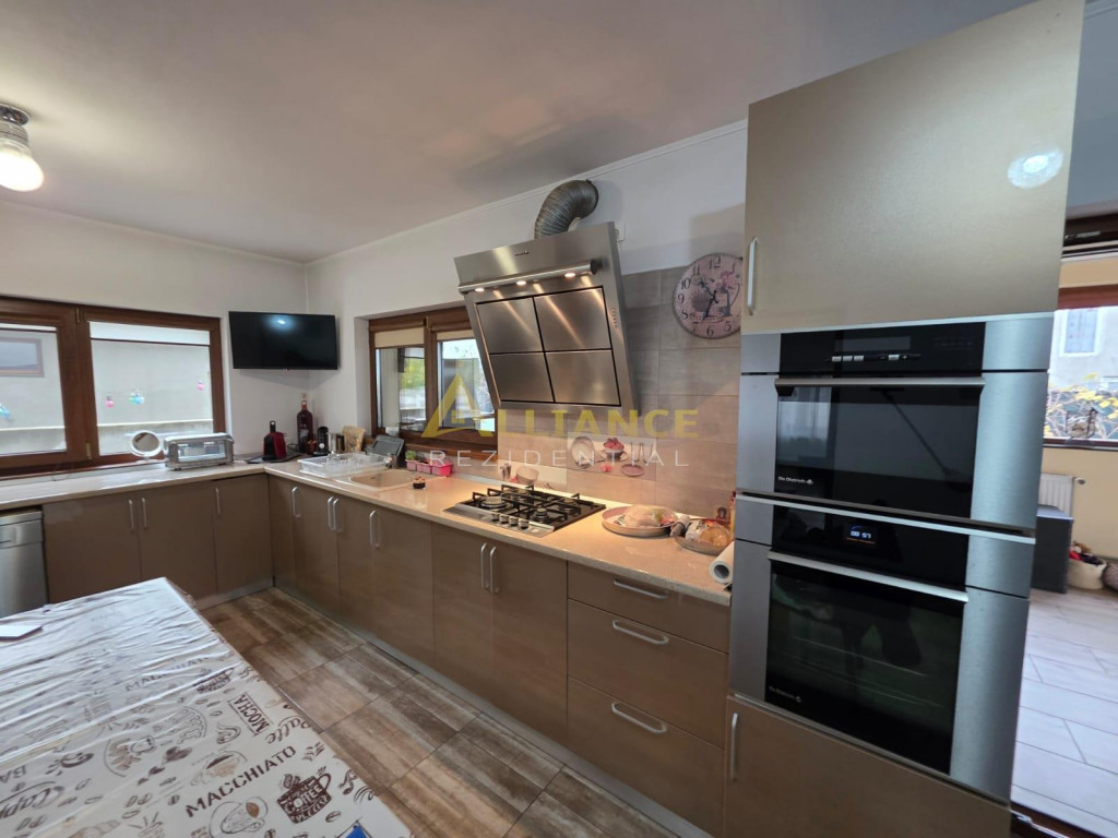 Vila Individuala Premium | Suprafata 249 mp | Teren 881 mp | Complet Mobilata si Utilata Va prezentam o proprietate de exceptie, destinata celor care isi doresc o locuinta spatioasa, moderna si construita la standarde riguroase de calitate. Vila impresioneaza prin suprafete generoase, compartimentare inteligenta si dotari tehnice superioare, fiind o oferta rara pe piata rezidentiala actuala. Nota: Proprietatea se vinde complet mobilata si utilata, exact conform prezentarii, fiind necesara doar mutarea obiectelor personale. Detalii Principale si Compartimentare Cu un regim de inaltime P 1 si o suprafata utila de 249 mp, locuinta ofera spatii luminoase si armonios distribuite: Master Suite (51 mp total): Dormitor matrimonial de 31 mp, dressing de 11 mp si baie privata de 9 mp. Dormitoare Suplimentare: Doua camere de 17 mp, respectiv 13 mp, ideale pentru copii sau oaspeti. Zona de Relaxare: Terasa acoperita si inchisa cu geam tripan (61 mp), utilizabila in orice sezon. Grupuri Sanitare: 3 bai cu finisaje moderne. Spatii Tehnice: Garaj de 54 mp cu usa automata si pod pentru depozitare. Dotari Tehnice si Echipamente Premium Proprietatea beneficiaza de o infrastructura tehnica avansata: Sistem de incalzire: Centrala pe peleti Ferroli (300 kW) si incalzire prin calorifere. Tamplarie: Geamuri tripan de inalta calitate pentru izolare termica si fonica. Utilitati: Curent trifazic, fosa ecologica si statie de dedurizare a apei. Bucatarie: Complet echipata cu electrocasnice din gama premium DeDietrich. Automatizari: Poarta auto si usa de garaj cu actionare automata. Amenajarea Curtii si Exteriorului Terenul de 881 mp este complet amenajat si intretinut, oferind un cadru natural deosebit: Vegetatie: Gazon matur, pomi fructiferi, vita de vie si aranjamente florale decorative. Ambient: Sistem de iluminat exterior integrat pentru estetica si siguranta. Avantaje Achizitie Pret: Include TVA. Comision 0%: Tranzactie directa, fara costuri suplimentare de intermediere. Consultanta Financiara: Servicii gratuite de brokeraj bancar pentru identificarea celei mai bune solutii de creditare. Aceasta proprietate reprezinta un standard de lux si confort, fiind pregatita pentru o tranzactie imediata. Pentru detalii suplimentare si programarea unei vizionari: Ionut Urzicaru: 0754 993 018