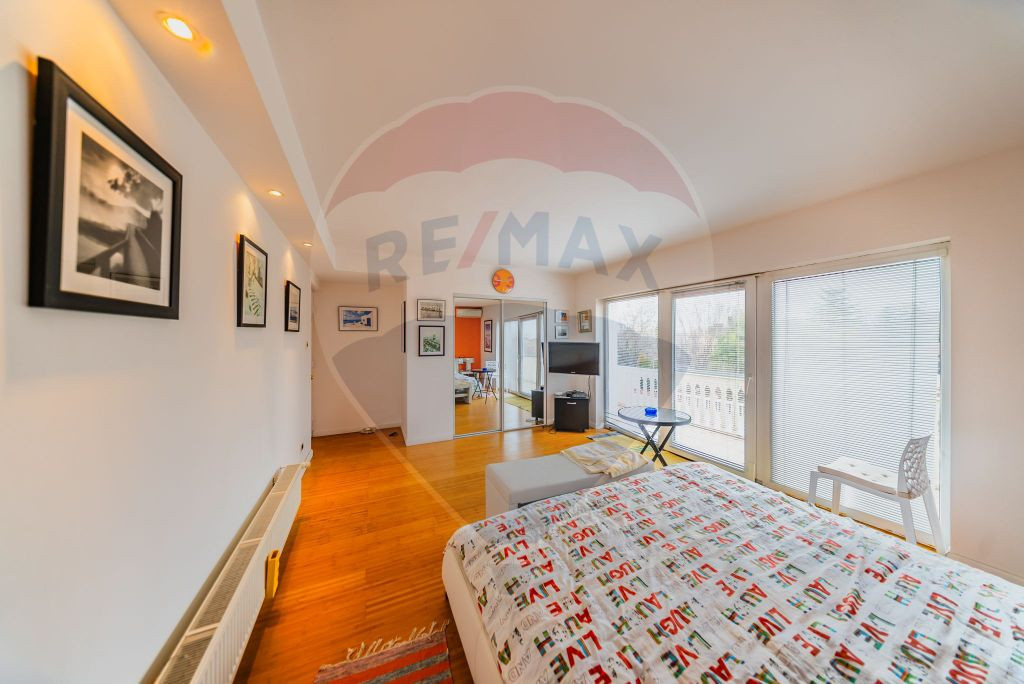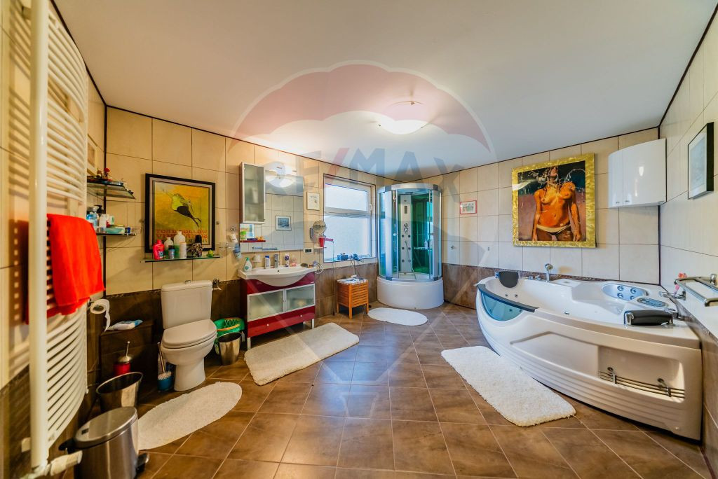 RE/MAX Dynamic va propune in exclusivitate spre vanzare o vila cu 4 camere situata intr-una dintre cele mai cautate zone ale orasului Arad, Subcetate. Construcția casei a fost finalizata in 2010, la standarde inalte, cu materiale de calitate superioara si a fost construita pe un teren cu o suprafața de 921 mp, cu un front stradal de 20m. Compartimentarea este dupa cum urmeaza : *La parter se afla un hol mare de 50mp, un living de 60mp cu șemineu si cu o deschidere pe terasa, un dormitor cu dressing, o baie de 16mp cu jacuzzi si cabina de dus, o bucătărie echilibrata ca dimensiuni cu ieșire pe terasa si un garaj spațios pentru doua mașini. * La etaj găsiți 2 dormitoare, fiecare cu dressing si balcon si o baie de 16mp tot cu jacuzzi si cabina de dus. * La subsol găsiți o sauna, o camera de relaxare si un spațiu pentru depozitare. Confortul termic este asigurat prin centrala proprie pe gaz, prin pardoseala si prin calorifere. Imobilul beneficiază de o terasa superba in suprafata de 80 mp acoperita cu gresie anti-alunecare importata din Spania , piscina de 66mp(11/6) unde va puteți răcorii in zilele toride , o camera tehnica cu baie de servici langa piscina , iaz cu pesti ,cuptor special amenajat . Aceasta locuinta imbina perfect utilitatea , calitatea si confortul . Pentru mai multe detalii si / sau programarea unei vizionari va astept cu drag la numarul de telefon .