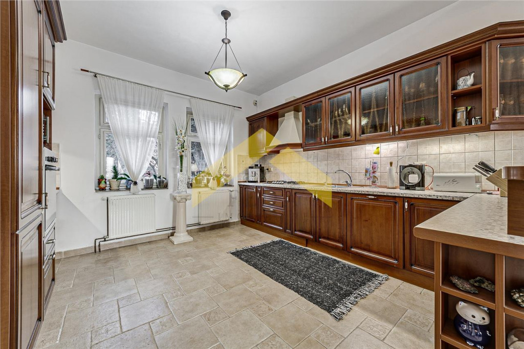 FEDA Imobiliare va ofera spre vanzare o casa cu 5 camere in zona Tabacovici. Casa este construita pe un teren cu o suprafata de 945 mp si un front stradal de 20 ml. Suprafata construita este de 560 mp cu un regim de inaltime D P 2E.Imobilul este compus din 4 dormitoare, un living cu o bucatarie open-space, doua bai, o camera tehnica, 3 balcoane, o terasa cu iesire din living, un garaj pentru doua masini si un demisol spatios pentru depozitare.Curtea este este amenajata cu:-aleile din curte sunt amenajate din praf de marmura cu rasina epoxidica -gazon-sistem de irigatie subteran cu 4 zone -pompa subterana 40 m adancime programabila -foisor cu gratar -piscina incalizta cu pompa de caldura -palmieri naturali pe structura metalica Dotari:-doua centrale termice pe gaz-masina de spalat rufe-masina de uscat rufe-masina de spalat vase -usi de garaj electronice-televizoare Casa se vinde complet mobilata si utilata.Pentru mai multe detalii sau programarea unei vizionari, nu ezitati sa ma contactati!!