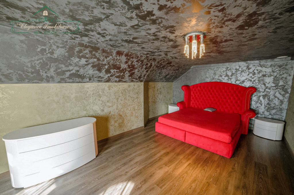 Elegance Imobiliare oferă spre achiziție o vilă individuală deosebită, cu 5 camere (4 dormitoare), situată în Vladimirescu, la doar câteva minute de Arad, într-o zonă de case liniștită, cu străzi asfaltate și iluminat public. Proprietatea are o suprafață construită de 350 mp și aproximativ 280 mp utili, este edificată pe structură de cărămidă în anul 2010 și modernizată în 2017, oferind astăzi un nivel de confort și finisaje peste medie. Terenul de 805 mp, cu un front stradal de 18 m, este complet amenajat, din care aproximativ 660 mp reprezintă spațiu verde, terase și zone de relaxare, plus 7 locuri de parcare. La parter, vila întâmpină cu un living generos, luminos, amenajat în stil clasic-contemporan, cu zonă de dining și spațiu dedicat pentru bucătărie, astfel încât viitorul proprietar îl poate organiza exact după propriile nevoi. Tot aici se află un dormitor confortabil, un dressing bine gândit pentru depozitare, un hol spațios și o baie elegantă, cu două dușuri, finisată cu faianță și gresie de calitate, oglinzi decorative și corpuri de iluminat premium. Atmosfera este caldă și rafinată, pusă în valoare de finisajele tip stucco venețian, pardoselile din parchet și gresie și tâmplăria din lemn cu geam termopan. Mansarda este configurată ca zonă de noapte, cu trei dormitoare de dimensiuni generoase, fiecare decorat într-o notă proprie, cu paturi matrimoniale impunătoare, plus o baie modernă și un hol circulant amplu. Întreaga casă este încălzită cu centrală termică proprie pe gaz, prin calorifere, beneficiază de aer condiționat, izolație exterioară, uși interioare din lemn și ușă de intrare metalică, precum și acces la toate utilitățile urbane: apă, canalizare, gaz, electricitate, internet, CATV și telefon. Exteriorul este un adevărat refugiu de relaxare. Curtea este atent amenajată, cu vegetație matură, arbori ornamentali și palmieri, foișor acoperit ideal pentru seri cu familia și prietenii, zonă de grătar zidit și o piscină exterioară încălzită, cu spațiu generos pentru șezlonguri și paturi de relaxare, completată de un jacuzzi amplasat discret între plante, pentru un plus de confort. Spațiile tehnice, camera tehnică, zonele de depozitare, anexa și uscătoria asigură partea practică a casei, astfel încât totul să fie bine organizat și ușor de întreținut. Proprietatea se potrivește perfect unei familii care își dorește o casă sigură, modernă și primitoare, într-o comunitate liniștită, dar cu acces rapid către oraș. În imediata vecinătate se regăsesc zone verzi, spații de joacă pentru copii, grădiniță, magazine, supermarketuri și mijloace de transport în comun. Vila se vinde parțial mobilată și utilată, astfel încât viitorii proprietari să își poată personaliza ușor fiecare cameră, păstrând totodată avantajul unei locuințe pregătite pentru mutare. Prețul de promovare al acestui imobil este de 265.000 euro, negociabil. Acest imobil poate fi achiziționat și prin programul Noua Casă sau cu Credit Ipotecar. Pentru mai multe detalii și pentru o vizionare personalizată, contactează-ne la numărul de telefon 0722.144.965. Elegance Imobiliare - partenerul tău de încredere în domeniul imobiliar! Id intern: P220145