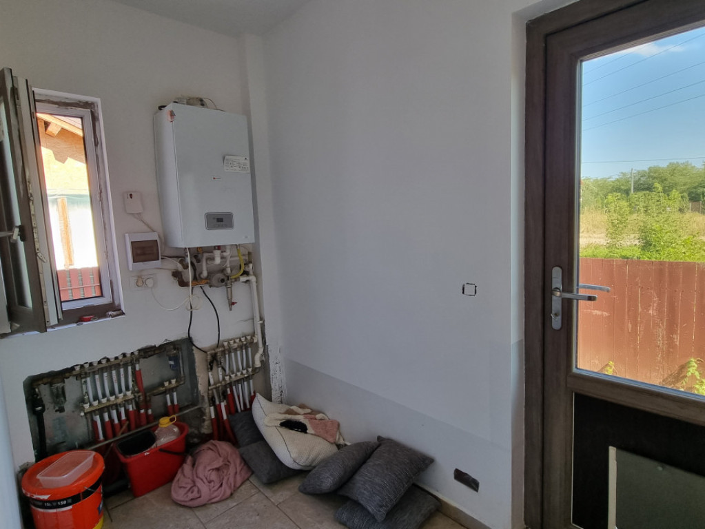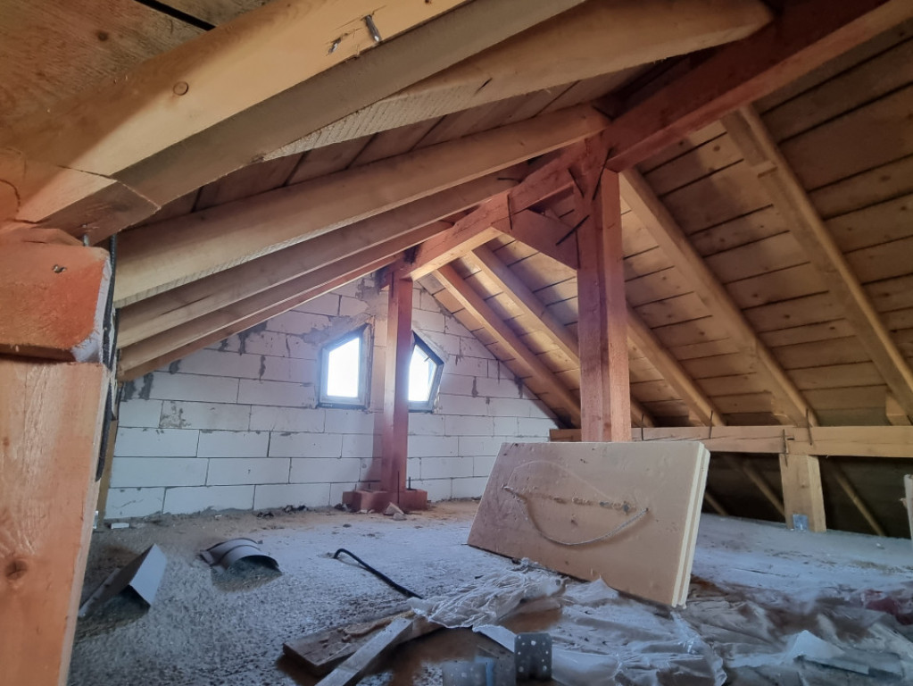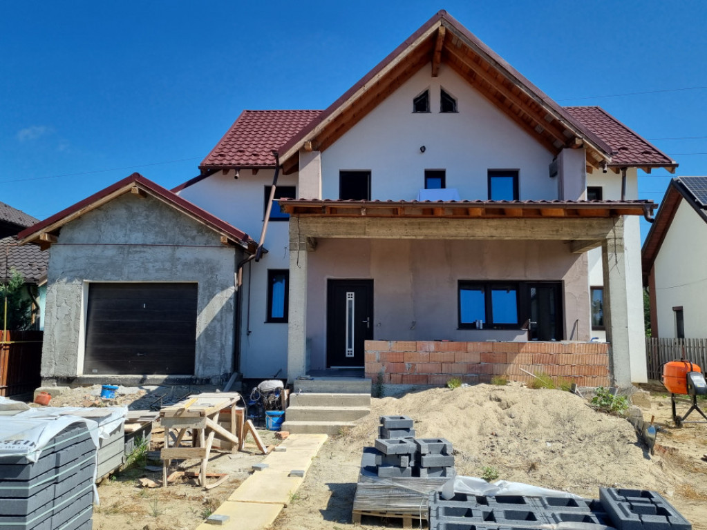 Casa construita pentru proprietar cu materiale de TOP. Constructie pe cadre de beton , Pereți caramida interiori și exteriori. Fundație pe cuzineți Izolație vata bazaltica de 10cm Tamplarie salamander top. Placa de beton peste parter si etajul 1. O construcție , solida si trainica. Pod inalt utilizabil cu scara de acces Garaj cu usa electrica tip rulou. Pompa pentru apa , fosa septica, La parter are living si bucatarie cu acces pe terasa, dormitor, baie, camera tehnica cu ieșire în spatele casei pe terasa a doua La etaj sunt 2 dormitoare fiecare cu baie proprie, dresing cu acces in pod+ spatiu depozitare și balcon. Parter 90m utili, la etaj 80m utili ,la mansarda 40m utili Gazon si terasa editate cu AI. Schimb cu apartament + diferența Comision 0. Id intern: P90450