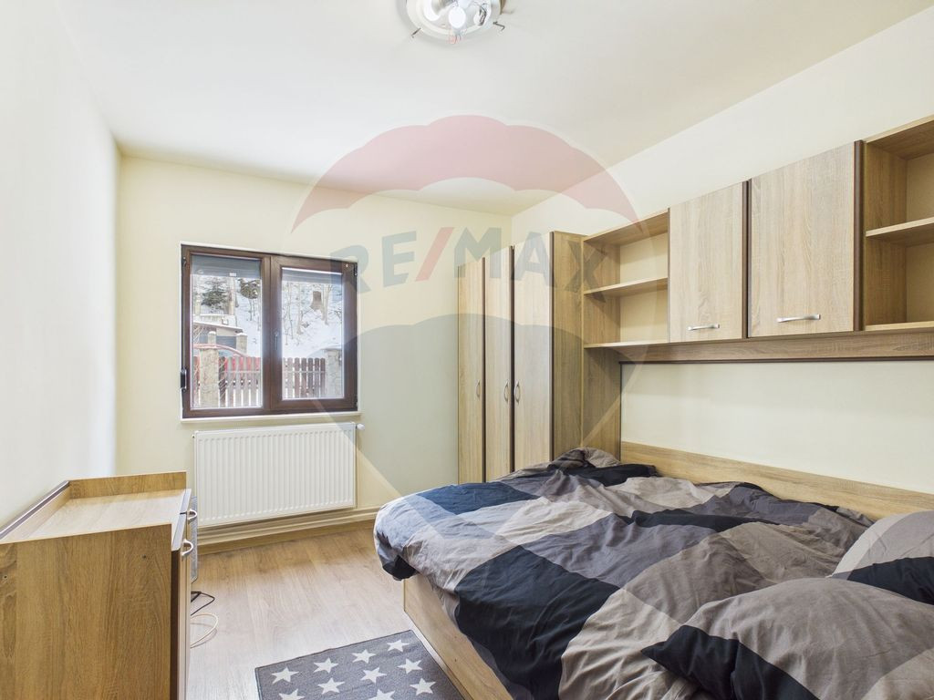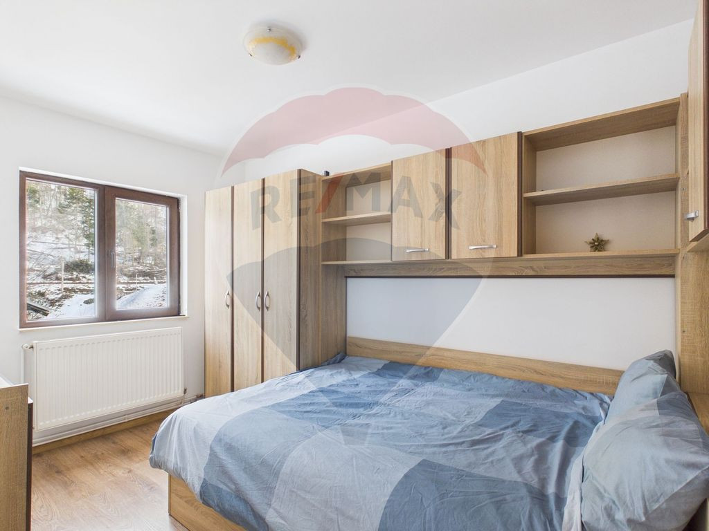 Vă propunem spre vânzare o proprietate solid construită, eficientă energetic și complet echipată tehnic, situată în Sinaia, pe Calea Brașovului, într-o zonă liniștită, cu priveliște către munte. Casa este potrivită atât pentru locuință permanentă, cât și pentru reședință de vacanță sau investiție în regim turistic. Compartimentare: – 4 dormitoare – 2 living-uri – 1 bucătărie – 3 băi – Hammam (baie turcească) cu cameră de schimb – 1 cameră mare neutilizată (ideală pentru birou, sală fitness sau spațiu hobby) – Garaj pentru 1 mașină cu ușă dublă izolată – Subsol Suprafață utilă etaj: 76,83 mp Suprafață utilă parter: 88,64 mp Dotări tehnice: – Centrală Vaillant EcoTech 33 kW (2024) – Panou solar pentru apă caldă menajeră (20 tuburi) – Boiler electric 300 litri (ACM independent de centrală) – Sistem fotovoltaic trifazat 7.3 kW – Baterii de stocare 22 kW – Racord electric trifazat 70 kW – Stație dedurizare apă și sistem de filtrare – Izolație exterioară 10 cm cu vată – Acoperiș nou – Izolație sub acoperiș cu barieră de vapori și vată montată recent Proprietatea oferă un nivel ridicat de eficiență energetică, costuri reduse de exploatare și un grad mare de autonomie. Capacitatea electrică disponibilă permite instalarea stațiilor de încărcare auto sau a altor echipamente cu consum ridicat. Curtea este împrejmuită, iar poziționarea oferă deschidere către zona montană, într-un cadru specific Sinaiei. Pentru informații suplimentare și programări la vizionare, vă stau la dispoziție.