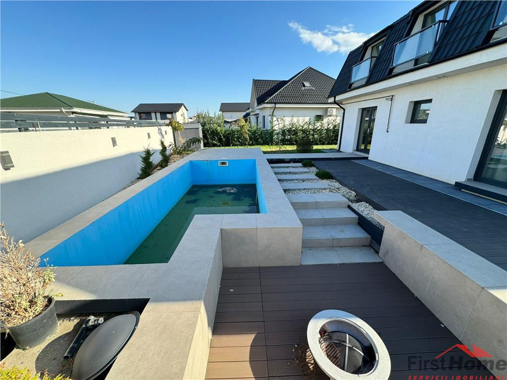 Vila cu piscina constructie 2020, P M de vanzare in zona Exterior Vest - Focsani, reper Cartier Doctor Carnabel, compusa astfel : parter - living, bucatarie, baie , dormitor matrimonial cu baie proprie si dressing, terasa cu piscina (in suprafata de 50mp) , etaj : - doua dormitoare , baie, balcon, biblioteca. Suprafata totala construita 220 mp, suprafata utila 150 mp si suprafata teren 560 mp Se vinde mobilata si utilata conform pozelor la pretul de 190.000 euro si nemobilata 170.000 Euro. Posibilitate cu plata in 2 rate! ID intern: 798.