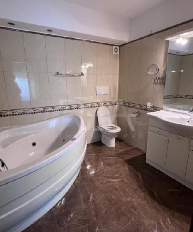 R.E.A. Imobiliare, Vila de închiriat în zona Băneasa, construită în 2005. Compartimentare: Parter 90 mp – living/dining, bucătărie complet utilată, baie, spațiu de depozitare, garaj Etaj 1, 75 mp – 3 dormitoare, 2 băi, dressing Două dintre cele 3 camere dispun de balcon Mansardă 61 mp – spațiu deschis, baie cu saună, dressing Curte individuală de 120 mp, cu sistem de irigații Rain Bird Curte comună cu piscină În curtea complexului sunt disponibile 2 locuri de parcare, plus garajul aferent vilei Stația de metrou: Aurel Vlaicu sau Pipera (linie M2), la aproximativ 1 km Stație de autobuz: 1 km (liniile 449, 450, 459, 488) Chiria este de 2.300 €/lună, cu o lună garanție. Preferabil fără animale de companie; se pot accepta doar animăluțe mici. Pentru detalii și vizionări, contactați-ne, specificând codul de identificare P9463. Id intern: P9463