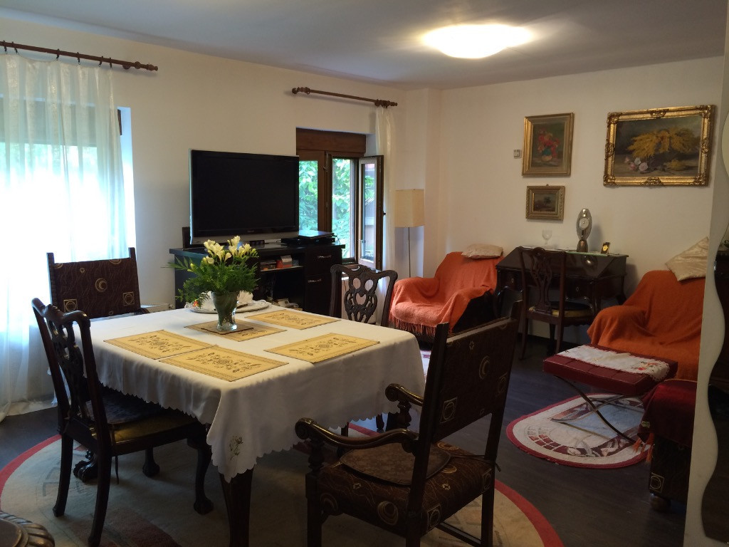 Vila parter plus etaj, curte generoasă, loc de parcare interior, trei dormitoare plus living și bucătărie, dormitoare la etaj cu baie proprie și două balcoane, baie cu jacuzzi
