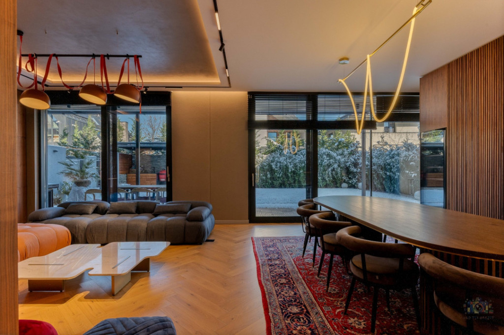 Va propunem o vila superba la vanzare. suprafata teren -450 mp suprafata construita la sol- 140 mp. suporafata construita totala 435 mp. (P+2) suprafata utila / etaj 110 mp. suprafata curte libera 310 mp Vila se vinde mobilata si utilata Vila are parter + etaj 1 + terasa si piscina etaj 2 vila are bucatarie + dining + living - 53 mp 3 dormitoare si 4 bai + birou /camera bona 2 locuri de parcare in fata imobilului. Vila este dispusa la parter- bucatarie /dining/ living / grup sanitar/ birou/ camera tehnica- 110 mp utili + terasa curte 30 mp = total 140 mp la etaj 1 - 3 dormitoare cu 3 bai = 110 mp utili + 2 balcoane de 20 mp = 130 mp utili la etaj 2- deck- piscina- terasa - 120 mp Particularități ale vilei. - pompa de căldura cu recuperare de căldura - răcire in tavane - încălzire si răcire in podea - aport de aer proaspăt din exterior in interior si extragere aer viciat - aspirator prin pereți - KNX si automatizări pentru controlul: lumini/ căldura/ draperii-perdele/ etc - senzori efracție - camere video Vila dispune de cel mai înalt nivel de automatizări din piața la ora actuala Se vinde de catre persoana fizica nu zse percvepe TVA Id intern: EXP512
