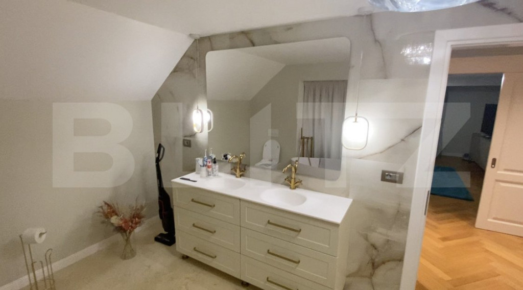 Blitz va propune spre achizitionare o proprietate rezidentiala de lux, realizata cu materiale, finisaje si mobilier de inalta calitate situata in zona Ford. Aceasta este alcatuita din 2 corpuri cu suprafata utila totala aproximativa de 600 mp amplasate pe un teren de 1507 mp. Primul corp reprezinta casa principala. Aceasta are o suprafata utila totala de aproximativ 460 mp impartita pe 4 niveluri dupa cum urmeaza: -demisol: spatiu cinema/ living/ dormitor/ baie/ camera spalare rufe/ camera tehnica; -parter: living/ sala dining/ bucatarie/ hol/ baie/ terasa inchisa; -etaj: dormitor principal cu dressing, baie proprie si balcon inchis/ dormitor/ baie/ hol; -mansarda: spatiul living/ dressing/ hol. Casa este construita pe structura de beton armat cu placa de beton intre etaje, pereti din caramida si izolatie exterioara din polistiren de 10 cm. Acoperisul este facut cu tigla si este izolat cu vata minerala de 10 cm. Printre finisaje si alte facilitati se numara: -sala cinama complet echipata si izolata fonic; -mobilier si finisaje de inalta calitate personalizate; -incalzire in pardoseala pentru toata casa cu exceptia demisolului; -tamplarie tripan; -aer conditionat; -jaluzele electrice. Cel de al doilea corp este reprezentat de o constructie cu suprafata utila de aproximativ 140 mp compartimentata dupa cum urmeaza: living open space cu bucatarie/ baie/ spatii depozitare. Este construit pe structura de beton armat cu placa de beton peste parter pereti din BCA de 30 cm si izolatie exterioara din polistiren de 10 cm. Printre finisaje si alte facilitati se numara: -tamplarie tripan GU cu ferestre mari pe toata partea din fata ce se pot deschide pentru perioada verii; -panouri solare de 25 kw cu baterii de stocare; -incalzire in pardosela; -aer conditionat. Curtea este imprejmuita cu gard din BCA de 3 m inaltime si amenajata cu travertin, gazon, plante ornamentale, iluminat ambiental si irigare smart, poarta automata si sistem de supraveghere video. Proprietatea dispune si de o piscina incalzita cu deck de lemn. Utilitățile de care dispune sunt gaze, canalizare, apa si curent. Cod ofertă / ID BLITZ: P134649 Id intern: P134649