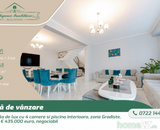 Elegance Imobiliare are plăcerea de a vă prezenta una din cele mai exclusiviste proprietăți disponibile pe piața imobiliară locală. Situată în cartierul Gradiste din Arad, această vilă de lux cu 4 camere reprezintă un simbol al eleganței și rafinamentului arhitectural.