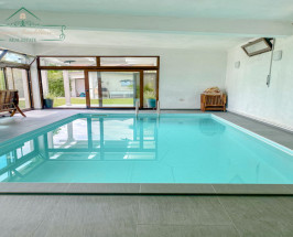 Compartimentarea generoasă și total decomandată, distribuită pe două niveluri, oferă spațiu și intimitate în egală măsură. La parter, vă întâmpină un dormitor spațios cu dressing, o baie modernă cu duș, un living luminos și primitor, ce se deschide către bucătăria complet echipată și o terasă închisă în termopan retractabil, ideală pentru momentele de relaxare și socializare. Un plus de lux îl reprezintă piscina interioară, pentru momente de răsfăț și recreere.
