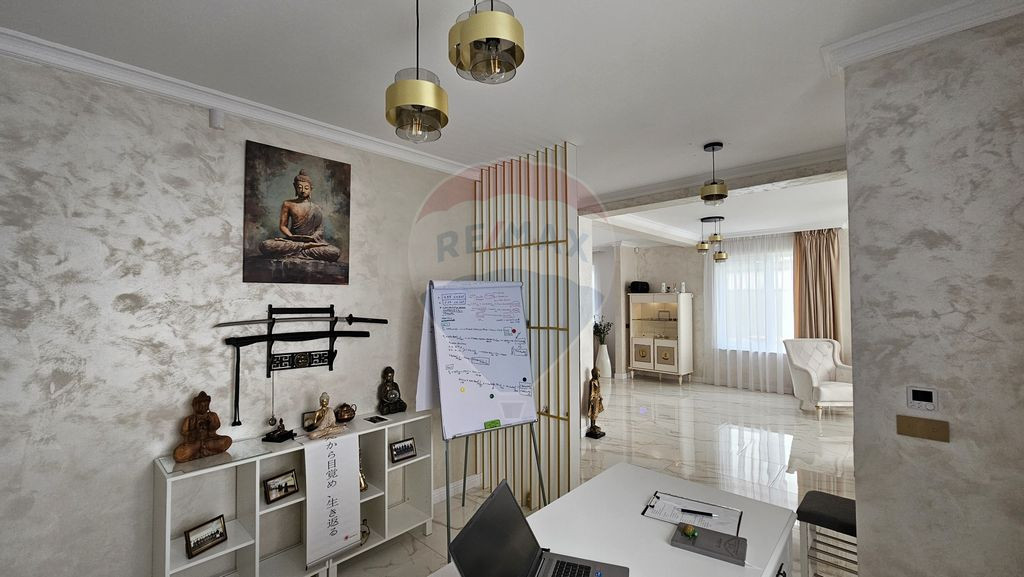Refugiul modern din inima Bucovinei – Vilă de lux Family Residence, Ipotești La doar 1 minut de Primăria Ipotești și 3 minute de centrul vibrant al Sucevei, această vilă individuală redefinește standardele luxului și confortului într-un ansamblu rezidențial exclusivist – Family Residence. Cu o arhitectură solidă pe structură de beton și zidărie Porotherm, izolație exterioară de 10 cm și finisaje premium, vila se distinge nu doar ca o locuință, ci ca o experiență de viață. Investiție inteligentă: Locația excelentă, dotările tehnologice avansate (automatizare Alexa, sistem de supraveghere video, recuperatoare de căldură Prana, încălzire în pardoseală etc.) și finisajele de lux fac din această proprietate o alegere ideală pentru cei care caută valoare, exclusivitate și potențial de creștere. Fie că este destinată reședinței personale sau exploatării ca locuință de lux în regim hotelier, rentabilitatea este garantată. Viața se simte altfel aici: Interiorul complet mobilat cu piese rafinate, bucătăria complet utilată cu plită cu inducție și hotă bluetooth, draperiile electrice, jacuzzi pentru 4 persoane cu încălzire automată și atmosfera controlată vocal creează un spațiu elegant, cald și profund personalizat. Exteriorul este un sanctuar verde: o terasă de 10 mp, un foișor de 12 mp ideal pentru serile de vară, o grădină amenajată cu sistem de irigație automatizat comandat de pe computer și o magazie de scule integrată cu discreție. 1. Localizare excelentă: Situată într-o zonă rezidențială liniștită, dar foarte aproape de centrul orașului Suceava, vila oferă acces rapid la facilitățile urbane, inclusiv centre comerciale, restaurante, școli și instituții medicale. 2. Design modern și finisaje de calitate: Vila este construită cu materiale de înaltă calitate și are un design contemporan, care include spații deschise, ferestre mari pentru lumină naturală și finisaje premium. Această vilă reprezintă o oportunitate unică pentru investitori, datorită poziționării sale ideale în inima Bucovinei. Vila poate genera venituri consistente din închirierea pe termen scurt, mai ales în sezonul de vârf. Într-o zonă cu o cerere în creștere pentru cazări premium, această proprietate poate deveni o afacere prosperă. Fie că alegeți să o transformați într-o pensiune cu aer boutique, fie într-un refugiu exclusiv pentru închiriere sezonieră, potențialul de rentabilitate este considerabil. De asemenea, locația avantajoasă, aproape de atracțiile turistice majore și de infrastructura locală, sporește valoarea acestei proprietăți pe piața imobiliară. LA PARTER găsim o terasa, un hol principal de unde avem acces la un living spațios și luminos, o bucătărie, un birou modern și o baie. LA ETAJ avem un hol generos care ne oferă acces la 3 dormitoare, 1 baie si un dresing. Indicatorii de performanță energetică a imobilului sunt: - clasa energetică: B - consumul anual total specific de energie primară: 201 kWh/m2an