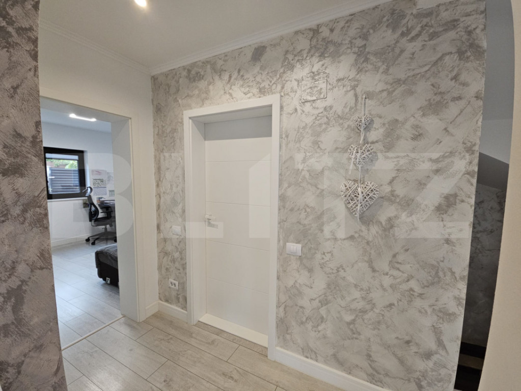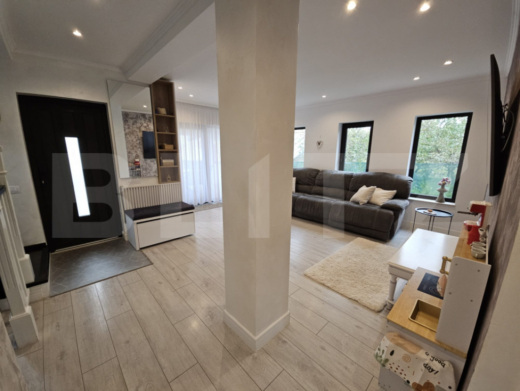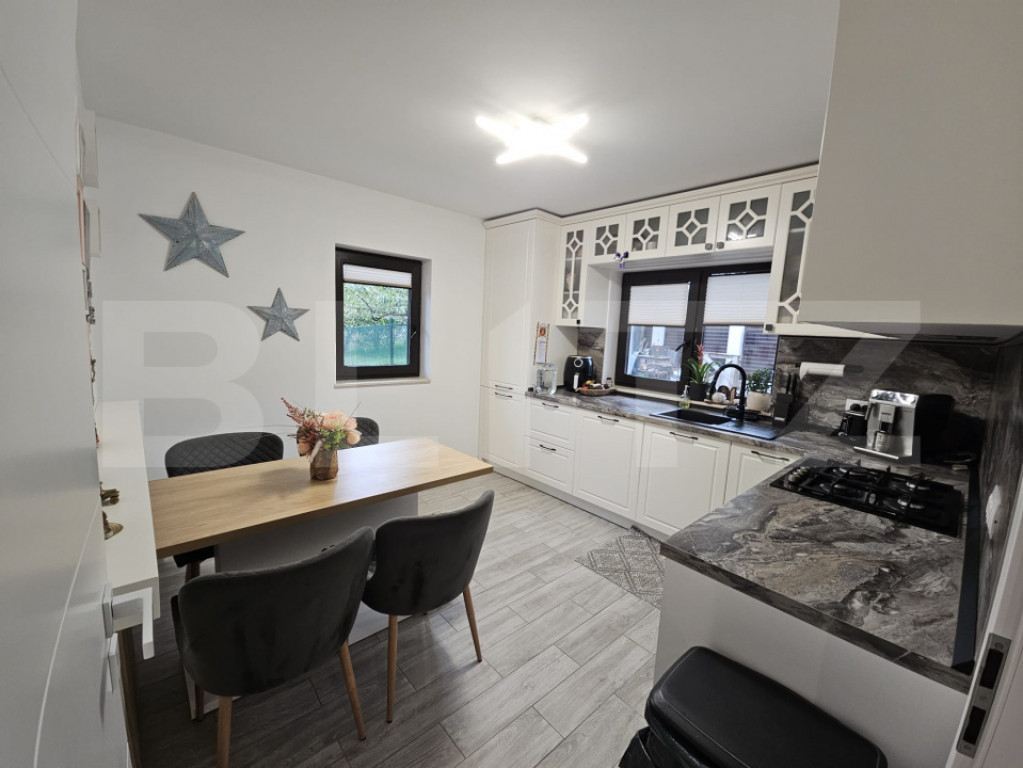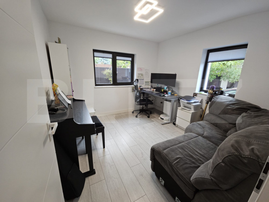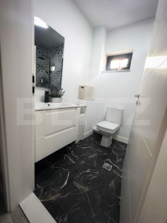 Blitz va propune in exclusivitate o proprietate extraordinar de frumoasa situata in Iasi pe Platoul Insorit intr-o asezare linistita, intr-un cartier de case. Locatia este una perfecta pentru cineva care cauta o casa pozitionata foarte aproape de mijloacele de transport in comun si in proximitatea supermarketurilor si a farmaciilor. Imobilul este construit cu materiale de cea mai buna calitate, respecta toate standardele in constructii si beneficiaza de toate utilitatile. Vila este amplasata pe un teren cu suprafata de 550 mp si are o suprafata construita de 210 mp, din care 160 reprezinta metri patrati utili. Constructia este realizata astfel: Plan demisol: spatiu depozitare, camera tehnica, scara interioara. Plan Parter: living+dining, bucatarie, birou/dormitor, baie, hol acces, scara interioara, hol, terasa acces si terasa acoperita. Etaj: 3 dormitoare, baie cu cada, 2 balcoane, hol. Vila beneficiaza de incalzire pe gaz folosind o centrala termica prin condensare, iar curentul electric este obtinut din panourile solare instalate pe casa. In ce priveste izolatie, proprietatea dispune de izolatie exterioara realizata cu vata bazaltica. Tamplaria este una de foarte buna calitate si termopanele sunt de tip tripan. Curtea este impartita in doua zone: Gradina: care beneficiaza de gazon cu un sistem sofisticat de irigatii si de ingrijire. Parcarea: este una pavata si cuprinde lejer doua autoturisme. Proprietatea este marginita la strada de un gard de beton de calitate cu elemente metalice si de o poarta metalica automatizata. Se vinde mobilata si utilata complet. ARE STATIE DE INCARCARE MASINA ELECTRICA. Va asteptam cu drag la vizionare! Cod ofertă / ID BLITZ: P154453 Id intern: P154453