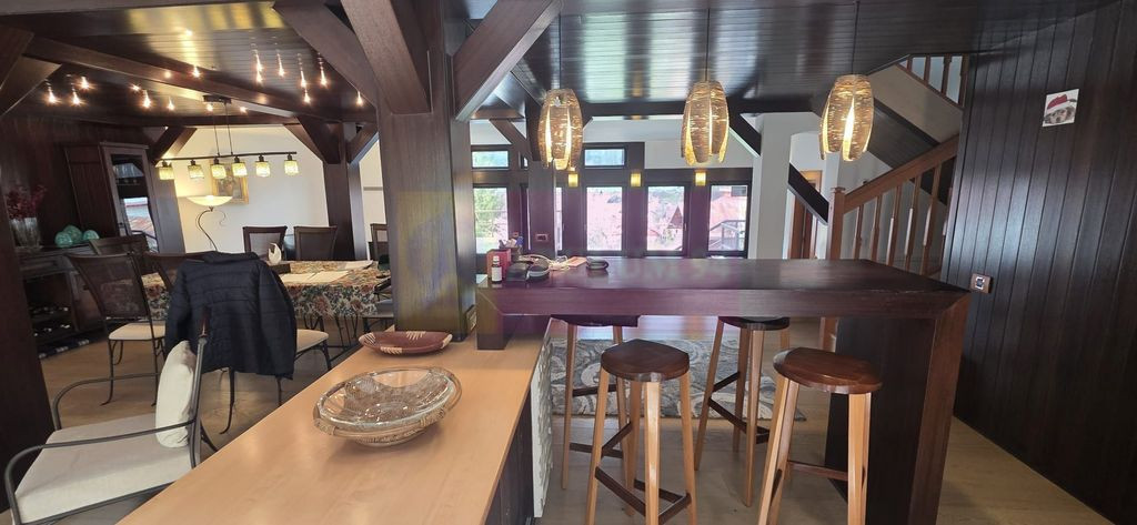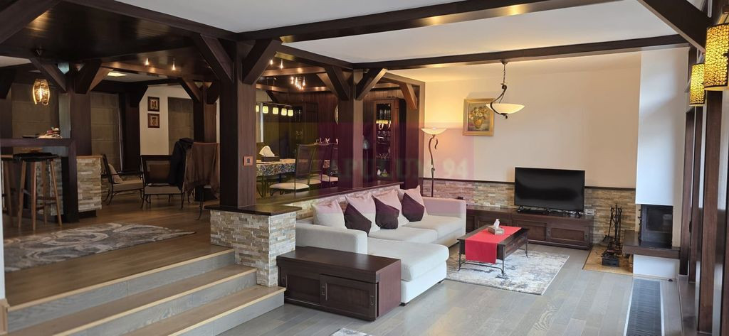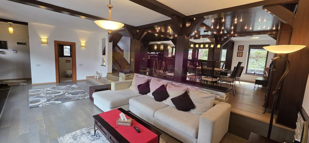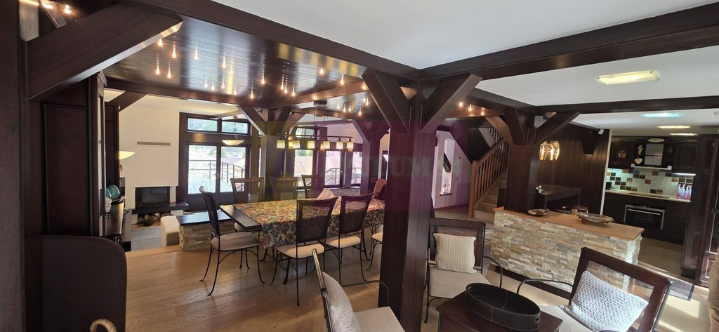 Agenția imobiliară Mervani Imobiliare vă propune spre vânzare o vilă exclusivistă, situată într-o zonă retrasă și liniștită din Bușteni, înconjurată de natură, cu acces direct la pădure și o panoramă superbă asupra Munților Bucegi. Descriere Această proprietate impresionează prin eleganță, calitatea execuției și atenția la detalii. Este o vilă luminoasă, spațioasă și primitoare, ideală pentru relaxare, vacanțe sau locuire permanentă într-un cadru natural deosebit. Suprafață teren 533+144= 677 mp Suprafață constuit desfăsurată = 249 mp Regim de înălțime: D+P+E Compartimentare inteligentă Demisol (31 mp): - Garaj generos, și încalzire și ușa automată Parter (108 mp): - Hol de acces - Living spațios cu ieșire pe terasă - Șemineu funcțional pe lemne (radiază căldură pe tot parterul) - Terasă frontală cu vedere directă către Bucegi - Bucătărie + zonă de dining - Grup sanitar - Terasă în spate cu vedere spre grădină și pădure - Zonă de relaxare cu barbeque și cuptor pe lemne Etaj (108 mp): - 4 dormitoare luminoase - 2 băi moderne cu duș - Dressing Pod: - Spațiu generos pentru depozitare Calitate premium a construcției - Fundație din beton armat + demisol din beton - Structură din lemn tip sandwich de înaltă calitate - Izolație exterioară cu vată bazaltică - Placări exterioare: piatră naturală (demisol și parter), lambriu (etaj și pod) - Acoperiș cu șindrilă bituminoasă - Tâmplărie din lemn cu geam termopan antiefracție - Branșament electric 380 V Confort termic superior: - Centrală pe gaz în condensare cu control prin internet - Încălzire în pardoseală (parter + băi) - Calorifere în restul încăperilor Finisaje și dotări: - Materiale premium din import - Gresie, faianță și obiecte sanitare de lux Teren și exterior - Suprafață teren: 533 mp + 144 mp pădure - Proprietatea se învecinează direct cu pădurea - Curte amenajată cu bun gust - Zonă intimă, aer curat și liniște deplină Siguranță: Sistem de alarmă Contract cu firmă de securitate Beneficiu major: vila se vinde complet mobilată și utilată, gata să te muți fără griji, din prima zi. Transformă acest loc în povestea ta. Alege liniștea, aerul curat și priveliștea spectaculoasă către Masivul Bucegi. Fie că îți dorești o vilă de vacanță sau un cămin permanent, aici găsești echilibrul perfect între natură, confort și eleganță. Sună acum și programează o vizionare: 0729.935.536 Descoperă mai multe pe: www.mervani.ro Nu lăsa această proprietate unică să devină doar o altă oportunitate ratată. Vino să o vezi și convinge-te!