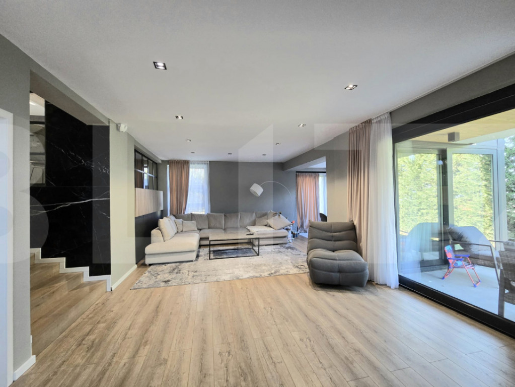 Vă propunem spre vânzare o casă individuală, situată într-unul dintre cele mai verzi și liniștite cartiere din Cluj-Napoca – cartierul Făget. Această proprietate beneficiază de o locație deosebită, face parte dintr-un ansamblu securizat, este perfectă pentru cei care doresc să trăiască in mijlocul naturii, fara a fi prea departe de centrul orasului, cu acces direct la drum principal și mijloace de transport public. Detalii proprietate: * Regim de înălțime: Subsol+ Parter + Etaj + Etaj Retras * Suprafață utilă: 325 mp * Terasa 35 mp * Teren: 1000 mp Compartimentare: * Subsol: o sala de sport, un birou, o baie, o uscatorie, camera tehnica. * Parter: Living cu zona de luat masa si acces pe terasa din spate, bucataria, baia , accesul in garaj. * Etaj: dormitor matrimonial cu dressing și baie cu duş walk-in si cada pentru 2 persoane *Etaj retras: un dormitor cu baier, un alt dormitor cu dressing si baia proprie. * Ultimul nivel unde se afla terasa de aproximativ 35 mp cu o priveliste spre tot orasul * Casa a fost conceputa si construita in 2020 pentru a putea fi locuita si de catre o familie extinsa. * Finisaje premium și detalii care definesc eleganța: * Finisaje de cea mai bună calitate, fiecare detaliu fiind atent gândit pentru a oferi confort și rafinament. * Mobilier realizat pe comandă , ce conferă casei un aer sofisticat și funcțional, electrocasnice de inalta calitate. * Fiecare cameră este proiectată pentru a maximiza spațiul și a crea acel sentiment, pe care toti ni-l dorim, de „ACASĂ”. Zona exterioară – Punctul forte al proprietății: - spatiu suficient sa petreci timpul cu familia si prietenii , suficient spatiu si pentru a se construi o piscina. * Parcare exterioara pentru 3 masini + Garajul. Locație: foarte accesibil in spre oras, zona de case private cu acces prin bariera. Cartierul Făget este o zonă deosebită, exclusiv de case, inconjurata de padure, amenajata cu trasee turistice, ideală pentru cei care iubesc natura si doresc sa traiasca o viata mai linistita, relaxata si nepoluata. Pentru mai multe informatii sau stabilirea unei vizinari va stam la dispozitie. Cod ofertă / ID BLITZ: P158266 Id intern: P158266