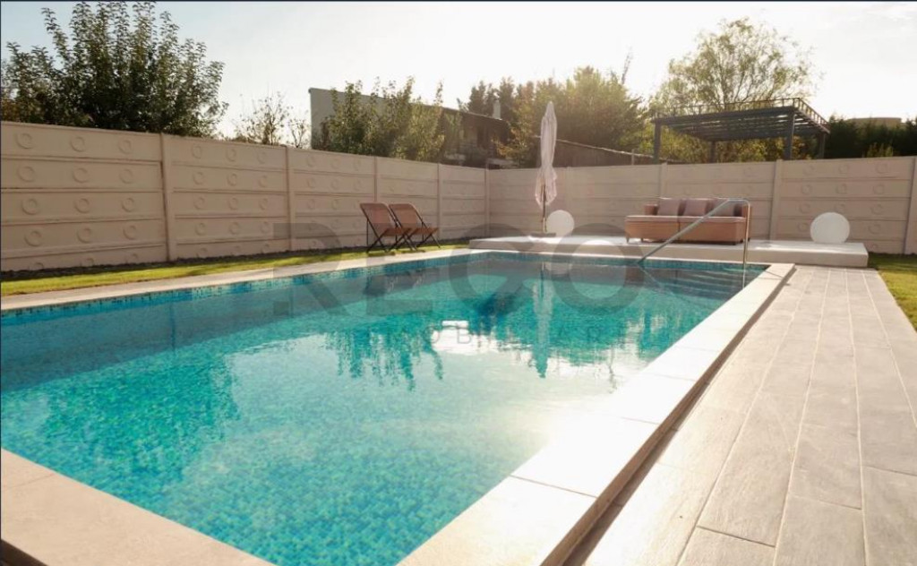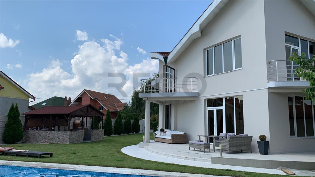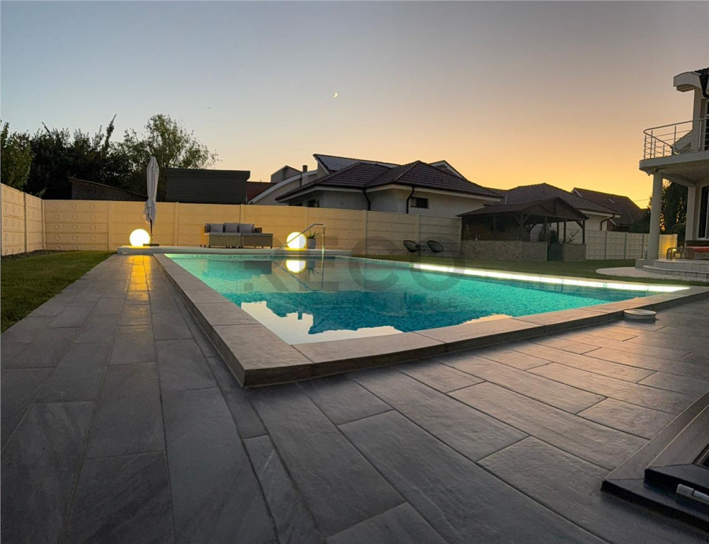 RECO Imobiliare va propune spre vanzare: #HC76 Vila de lux in Sanmartin- Beverly Hills, ideala atat pentru locuit cat si pentru pensiune datorita locatiei ( la 5 minute de mers pe jos de centrul statiunii Baile Felix). Este situata pe o strada linistita, care beneficiaza de toate utilitatie curent, apa, canalizare, gaz in curs de bransare, si asfalt. Casa a fost terminata in 2010, este foarte spatioasa si se afla pe un teren de 1178 mp, cu acces automatizat, avand un front generos de 30 ml. Este dispusa pe 3 nivele, compartimentata astfel: -la parter: hol acces generos, spalatorie, garaj pentru 2 masini, spatiu tehnic, camera de zi, 1 dining, 2 dormitoare, 1 baie spatioasa cu dus walk in, o bucatarie separata, dining in spatiu semideschis cu un living in suprafata de 60 mp, cu iesire in terasa. -la etaj: hol generos, un dormitor matrimonial (avand iesire in balcon) cu dressing generos si o baie spatioasa cu vana jacuzzi, alte 2 dormitoare ( unul cu iesire in balcon) si zona de living cu bar avand iesire in terasa de la etaj si inca o baie. Casa este finisata lux, a fost renovata complet si interior, si exterior in 2022, cu materiale de inalta calitate. Are geamuri cu 7 camere, cu sticla ionizata termopan cu 3 straturi, instalatii bine executate, usi interioare de calitate, parchet, 3 balcoane finisate cu marmura alba - la fel si pervazele. Curtea este amenajata modern, intregul teren fiind imprejmuit cu gard inalt si amenajat cu arbusti inalti. Pe langa acestea, dispune de porti automate, alei din piatra alba, gazon bine intretinut, sistem de irigare automatizat, cu apa care provine de la retea si nu in ultimul rand o filigorie complet dotata. Exista si o piscina generoasa de 9x4 m cu o adancime de 1,70 m. In lateralul casei exista o constructie, pe un singur nivel in suprafata de 60 mp, care este compusa dintr-o incapere, iar pe latura opusa a casei gasim o terasa de vara acoperita, chiar in apropierea piscinei. Incalzirea vilei se realizeaza printr-o pompa de caldura si instalatie de gaz, totul digital. Dispune de panouri fotovoltaice 6 kw. Suprafata teren 1178 mp Suprafata utila 340 mp Toate utilitatile (curent, apa, canalizare, gaz) sunt pe propietate. Exista si supraveghere video. PRET: 490000 Euro, neg. Se vinde mobilata si utilata complet. Pentru mai multe detalii si vizionari, va stam la dispozitie. TEL: 0376 443 700