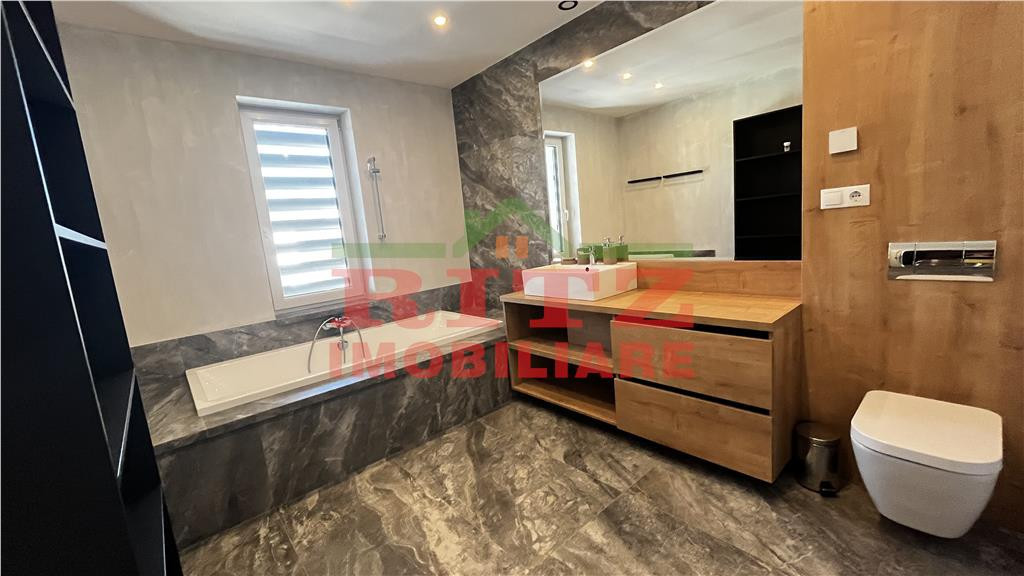 Agentia Ritz Imobiliare va ofera spre inchiriere o vila eleganta, tip P 1E, situata in apropierea Palatului de Justitie, intr-o zona rezidentiala linistita. Aceasta proprietate impresionanta a fost finalizata in 2021 si beneficiaza de cele mai inalte standarde de finisare. Detalii Proprietate: Suprafata: 260mp, ideala pentru o familie. Dormitoare: 3 dormitoare spatioase, fiecare amenajat cu atentie la detalii. Dormitorul matrimonial dispune de dressing si baie proprie. Living: 1 living modern, perfect pentru momente de relaxare si socializare. Bucatarie: 1 bucatarie complet utilata, dotata cu aparatura de ultima generatie, cu iesire spre terasa. Bai: 3 bai elegante, fiecare cu finisaje de lux. Dressing: Spatiu dedicat pentru organizarea hainelor. Garaj: Garaj privat pentru confortul dumneavoastra. Terasa: Terasa amenajata cu gratar, ideala pentru petrecerea timpului in aer liber. Facilitati si Securitate: Finisaje de cea mai inalta calitate, care asigura un confort sporit. Supraveghere video pentru siguranta locatarilor. Zona linistita, perfecta pentru o viata de familie armonioasa. Aceasta vila de lux este ideala pentru cei care cauta confort, eleganta si siguranta intr-o locatie de prestigiu, in centrul orasului! Imobilul se inchiriaza pe minim 1 an, nu se inchiriaza pe perioade scurte! Rugam seriozitate! Se solicita o chirie in avans o luna de garantie 50 % comision agentie! Contactati-ne pentru mai multe informatii sau pentru a programa o vizionare!