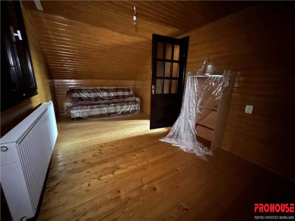 Caban#259; din lemn, deosebit#259;, cu poten#539;ial, la 23 kilometri de Bac#259;u! Sat V#259;leni, com. Secuieni; Suprafa#539;#259; util#259;: 300 m.p. - D P M; Teren: cca. 6.226 m.p. (5.000 m.p. livad#259; icirc;ngr#259;dit#259;, cu cca. 220 pomi fructiferi tineri: m#259;r / p#259;r / prun / cire#537;); Pre#539; 82.900 euro D = camer#259; mare, baie, hol, acces spa#539;iu tehnic, central#259; pe lemne, boiler cu icirc;nc#259;lzire lemne #537;i electric; P = living buc#259;t#259;rie, open-space, dou#259; terase; M = hol, dou#259; dormitoare, baie, balcon; Foi#537;or = 20 m.p. dotat cu plit#259; (rol#259;, cuptor/vatr#259;), ap#259; curent#259;, gr#259;tar; Drum acces privat, la 100 metri de #537;oseaua asfaltat#259; Z#259;podia ndash; Ro#537;iori; Materiale mixte / funda#539;ie beton bacirc;rne, izolat#259; la interior cu vat#259; mineral#259;, polistiren, pere#539;i din rigips #537;i lambriu din lemn, izolat#259; exterior la nord cu polistiren; Parchet, calorifere noi, gresie (inclusiv pe terase #537;i icirc;n foi#537;or); Icirc;n stacirc;nga, magazie mare (poate fi transformat#259; icirc;n garaj sau spa#539;iu de locuit) beci; Facirc;ntacirc;n#259; icirc;n curte, alimentare cu 380V; Mai multe detalii icirc;n PM #537;i la telefon 0755.117.118. Aceast#259; proprietate este disponibil#259; exclusiv prin agen#539;ia imobiliar#259; PROHOUSE, garantacirc;nd o intermediere profesionist#259; #537;i transparent#259;.