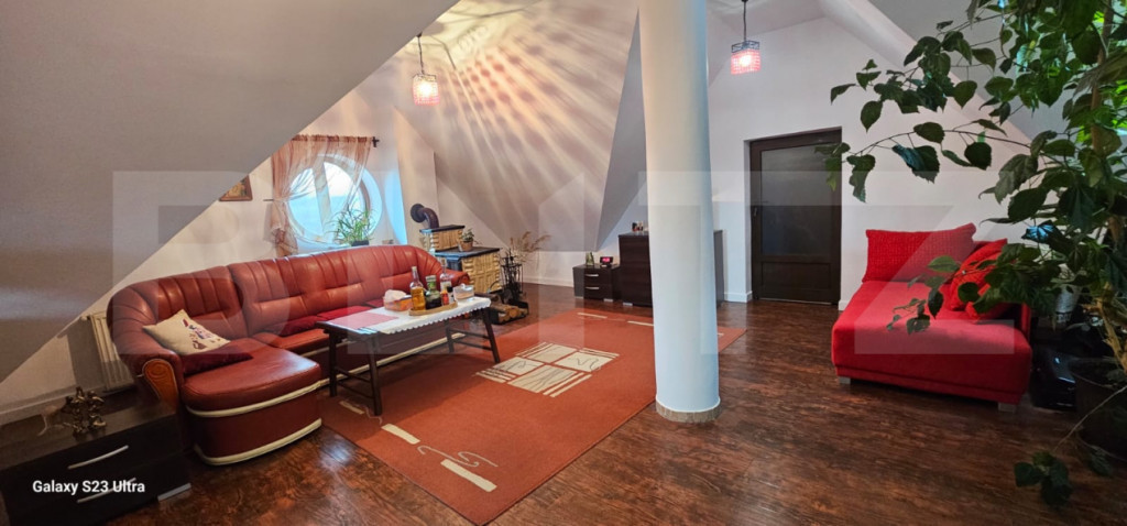Blitz oferă spre vânzare o proprietate de excepție în zona Bucium, la doar câțiva pași de Plopii fără Soț. Casa beneficiază de o panoramă superbă asupra orașului, datorită poziționării sale la înălțime. Viitorul proprietar al casei se va bucura de apusuri spectaculoase la înălțime, care vor transforma fiecare seară într-un moment de relaxare și inspirație. Proprietatea dispune de o suprafață generoasă de 47 mp suprafață construită și 382 mp suprafață utilă, la care se adaugă anexele existente. Terenul are o suprafață totală de 1000 mp, oferind intimitate și multiple posibilități de amenajare și odihnă. Casa este complet mobilată, echipată cu toate utilitățile necesare și pregătită pentru a fi locuită imediat, fără nicio investiție suplimentară. Locuința este structurată pe parter, etaj și mansardă, compartimentarea fiind atent gândită pentru confort și funcționalitate: Parter: living și bucătărie open space, două dormitoare, baie, dressing, cameră tehnică, beci, plus o terasă impresionantă de 70 mp. Etaj: living cu șemineu și acces către o terasă acoperită de 80 mp, dormitor, birou, dressing, baie, verandă și garaj semideschis. Mansardă: spațiu open space cu living și bucătărie, dressing, cameră tehnică și baie. Proprietatea este dotată cu două centrale termice, trei intrări separate, canalizare și toate utilitățile necesare pentru un confort deplin. Datorită dimensiunilor sale generoase și a compartimentării versatile, casa poate găzdui o familie numeroasă, două familii sau poate fi adaptată pentru activități economice – fiind o investiție excelentă din toate punctele de vedere. Va asteptam cu drag la vizionare! Cod ofertă / ID BLITZ: P160224 Id intern: P160224