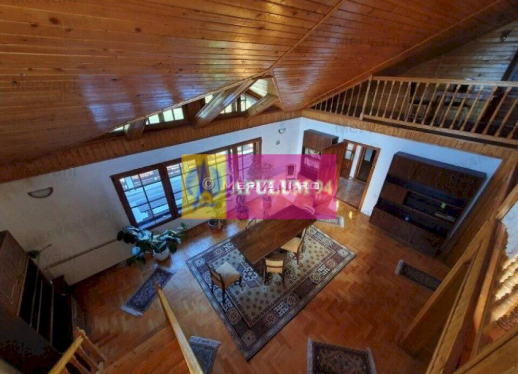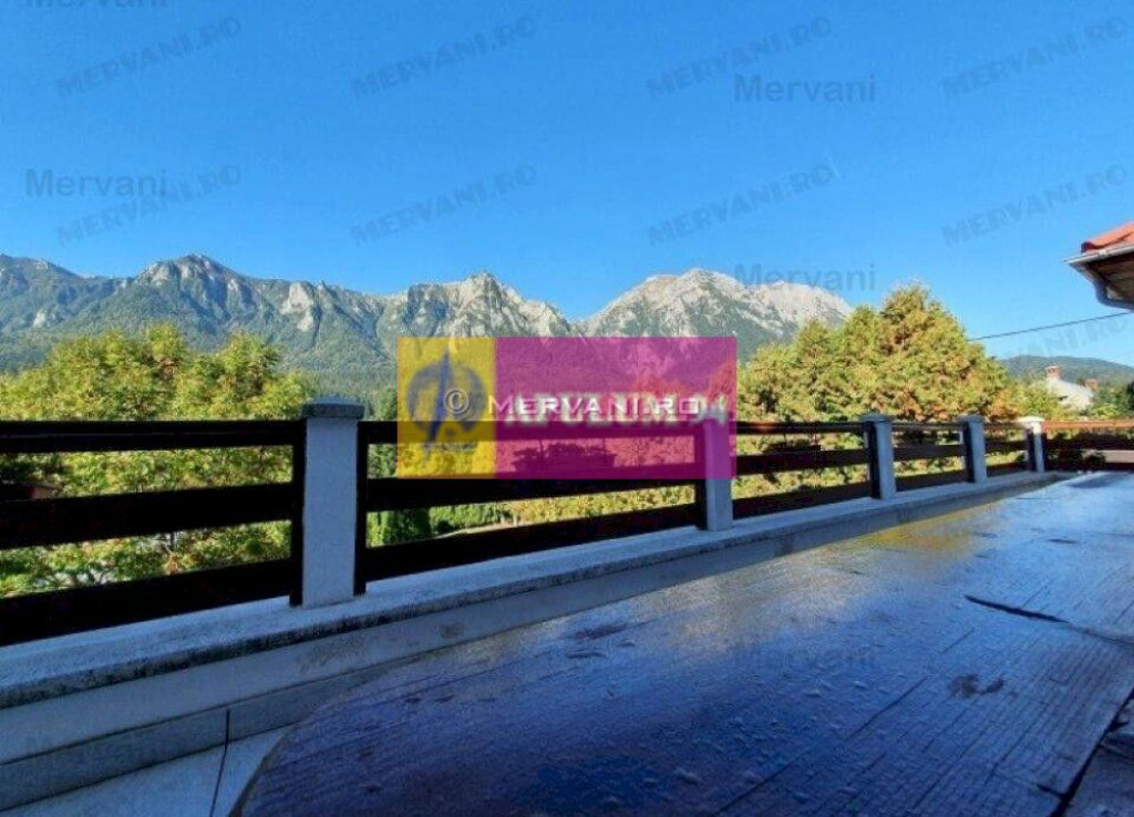Vila turistica de vanzare in Busteni, avand o suprafata totala de 630 mp, un regim de inaltime P+E+M si fiind edificata pe un teren in suprafata de 1100 mp. Aceasta are urmatoarea structura: Parter: Living cu semineu functional si dining cu iesire pe o terasa deschisa de apr 50 mp, bucatarie, 4 dormitoare, 4 bai, 1 wc de serviciu, camera tehnica, hol si casa scarii; Etaj: Living room cu iesire pe o terasa exterioara de 34 mp, bucatarie, 5 camere, 4 bai, hol si casa scarii; Mansarda: Camera de 52 mp si un grup sanitar. Vila dispune de un garaj in suprafata de 52 mp, o curte amenajata cu alei pietonale, gazon si arbusti ornamentali. Se afla intr-o zona usor accesibila si beneficiaza de o priveliste panoramica deosebita catre masivul Caraiman.