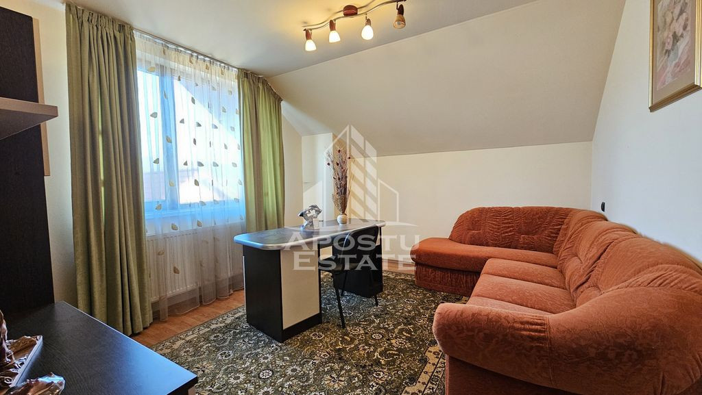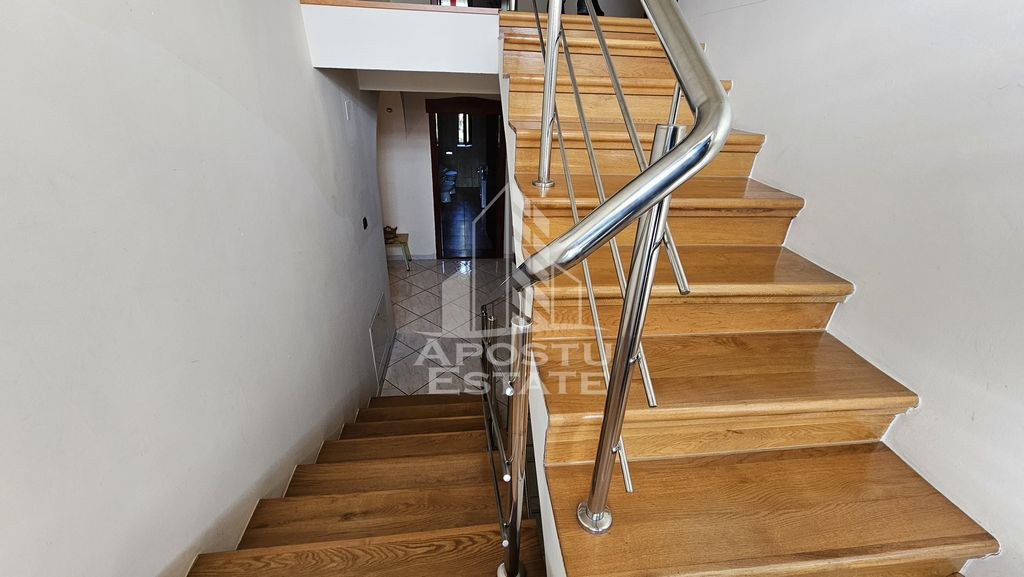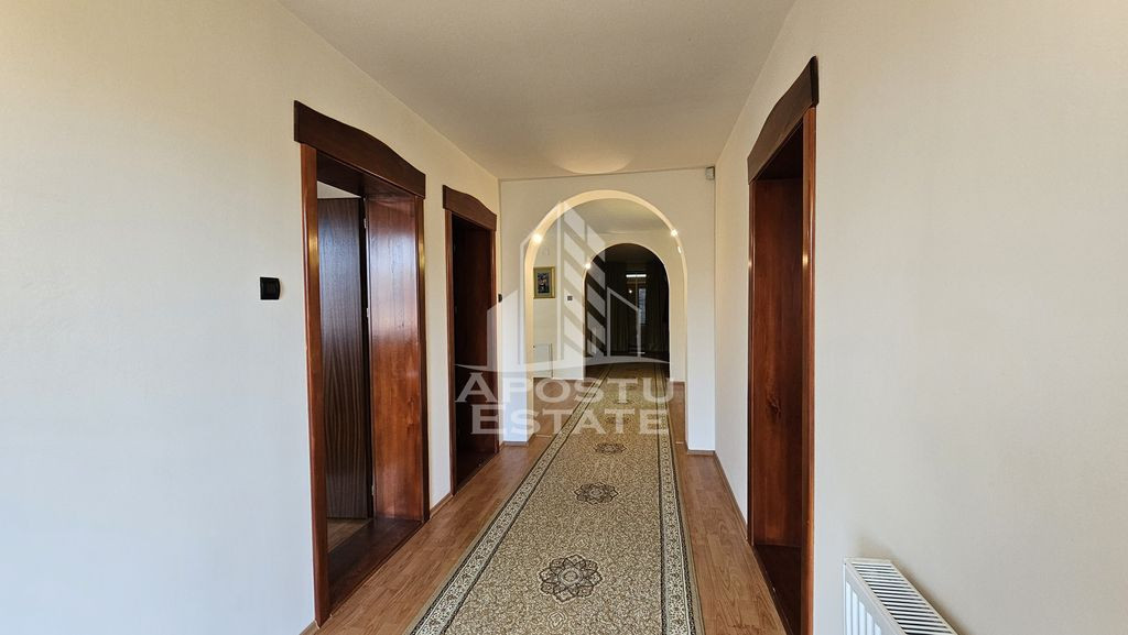 APOSTU ESTATE va prezinta o proprietate exclusiva in Ghioroc - o vila eleganta cu 7 camere si o suprafata generoasa de 3100 mp de teren. Aceasta proprietate impunatoare este structurata pe Demisol, Parter, Etaj si Pod, oferind o compartimentare bine gandita pentru a satisface cele mai exigente gusturi. Configuratia imobilului este urmatoarea: Demisol: camera tehnica camera pentru depozitare Parter: living bucatarie dormitor camera de luat masa dressing baie cu cada baie cu dus terasa de 20 mp Etaj: 4 dormitoare 2 bai bucatarie balcon de 8 mp terasa de 10 mp Pod: intreaga suprafata a etajului Sistemul de incalzire este asigurat de o centrala alimentata atat cu curent electric, cat si cu lemne. Proprietatea dispune de 2 garaje acoperite, o gradina cu o livada extinsa de 2000 mp si o curte spatioasa de 600 mp. Pentru mai multe informatii sau pentru a programa o vizionare, va invitam sa ne contactati. Acceptam diverse forme de finantare, inclusiv credit bancar, si oferim consultanta specializata pentru obtinerea celui mai avantajos Credit Ipotecar sau credit Noua Casa. Va asteptam cu placere sa descoperiti aceasta proprietate de exceptie printr-o vizionare personala!