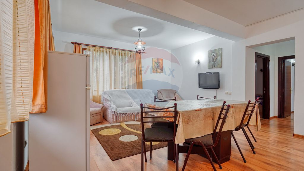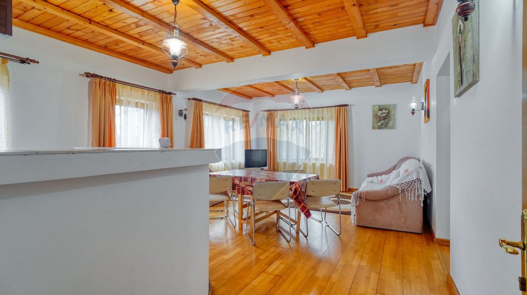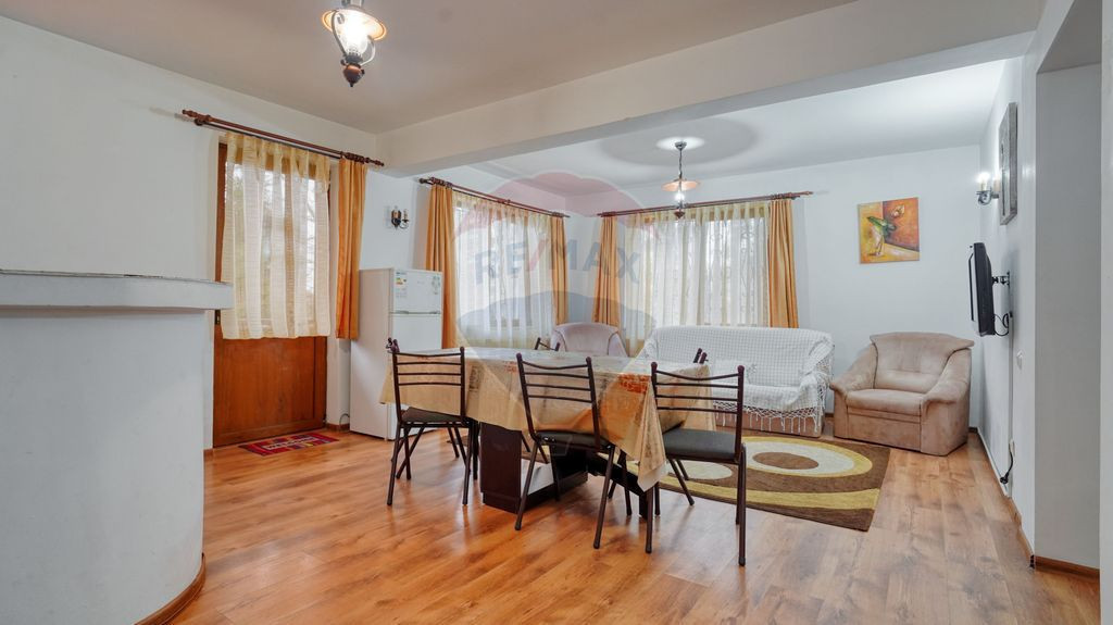 Vă propun spre vânzare, in regim de reprezentare exclusiva, cu comision 0 la cumpărător, o vilă modernă, amplasată într-o zonă deosebită din Predeal, cu priveliște directă către pârtia de schi, ideală atât pentru uz rezidențial, cât și pentru investiție în turism. Imobilul beneficiază de o poziționare excelentă, orientată frontal către pârtie, oferind un peisaj montan spectaculos, vizibil de pe terasă și balcoane. Situată la aproximativ 450 m de centrul stațiunii, vila asigură un echilibru perfect între liniște, intimitate și acces facil la principalele puncte de interes. Caracteristici generale: Suprafață utilă: 160 mp Suprafață teren: 544 mp Regim de înălțime: P+1 + pod (cu posibilitate de mansardare) Număr camere: 6 camere spațioase și luminoase Băi: 2 băi moderne Bucătării: 2 bucătării open-space, complet echipate Dotări și finisaje: 3 balcoane și o terasă generoasă cu vedere panoramică Construcție solidă din cărămidă Finisaje de calitate: parchet, tâmplărie termopan Centrală termică proprie, pentru confort pe tot parcursul anului Acces auto pe drum asfaltat Loc de parcare inclus Această vilă este ideală atât pentru o reședință de vacanță, cât și pentru investiție, având un potențial excelent pentru închiriere în regim turistic. Bucurați-vă de aer curat, peisaje de vis și acces rapid la pârtiile de schi și traseele montane! Pentru mai multe informații sau pentru a programa o vizionare, nu ezitați să ma contactați!