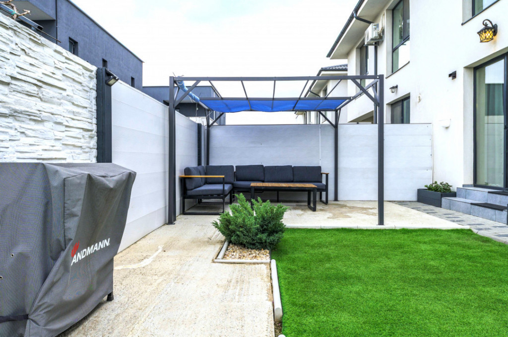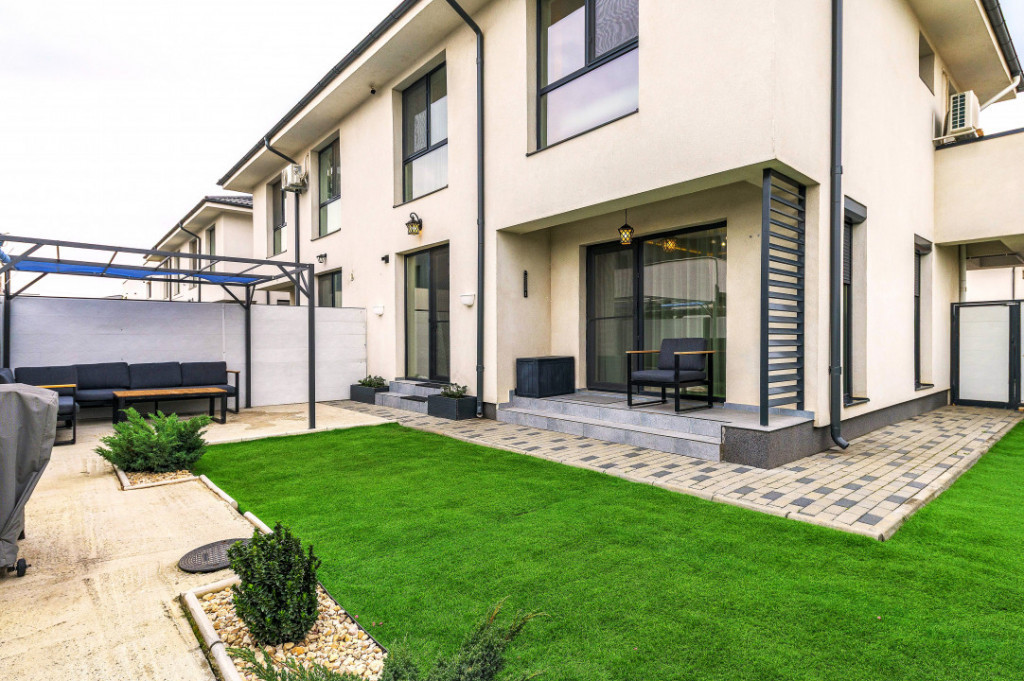 **Vila modernă cu 4 camere în Tunari - Confort și eleganță aproape de București*** Descoperă această vilă elegantă situată în Tunari, perfectă pentru cei care își doresc liniște și confort, dar cu acces rapid către oraș. Proprietatea este dispusă pe parter și etaj și oferă un spațiu generos, ideal pentru o familie. Vila are 4 camere, dintre care 3 dormitoare, unul fiind amenajat ca birou, dar ușor de transformat înapoi în dormitor, în funcție de nevoi. Bucătăria open-space creează un ambient modern și primitor, iar cele 3 băi[una dintre ele fiind transformata in dressing, cu posibilitatea de a reveni la o baie functionala] asigură confort pentru toți membrii familiei. Locuința este construită cu finisaje premium, având pereți placați cu ardezie, care oferă un aspect elegant și un plus de durabilitate. Tâmplăria Salamander Tripan asigură o izolare termică și fonică excelentă, iar pentru un plus de siguranță și intimitate, vila este dotată cu rulouri PVC la geamurile de la parter. La nivel de securitate, proprietatea dispune de senzori de mișcare la parter și sistem de alarmăpentru protecția locatarilor. În exterior, te poți bucura de o terasă amenajată cu gazon verde și pergolă, perfectă pentru relaxare. Separat, vila beneficiază de un puț de apă dedicat pentru irigarea grădinii, astfel încât întreținerea spațiului verde să fie eficientă și economică. Pentru eficiență energetică și confort sporit, casa este dotată cu centrală termică de 32 kW, care asigură încălzire optimă în orice sezon. De asemenea, podul casei este accesibil pentru depozitare și izolat cu spumă, oferind un spațiu suplimentar util. Această vilă nu doar că oferă un spațiu generos și modern, dar beneficiază și de o locație excelentă, cu numeroase facilități ideale pentru o familie. Situată pe Strada 1 Decembrie din Tunari, proprietatea se află într-o zonă liniștită, dar cu acces rapid la toate punctele de interes din apropiere. Viitorii proprietari vor avea la dispoziție parcuri pentru copii, perfecte pentru momentele de relaxare în aer liber, supermarketuri și restaurante, aflate la doar câțiva pași, pentru cumpărături rapide sau cine în oraș. De asemenea, accesul la instituții de învățământ din apropiere, precum Școala Gimnazială Nr. 1 Tunari și Grădinița „Prichindel”, face ca această locuință să fie ideală pentru familiile cu copii. Transportul este facilitat de stațiile de autobuz din zonă, cu liniile 403 și 459, care asigură conexiuni rapide către București. Linia 459 oferă legătură directă cu stația de metrou Aurel Vlaicu, facilitând accesul rapid la centrul orașului. Această vilă reprezintă combinația perfectă între un stil de viață modern, siguranță, confort și acces la facilități esențiale pentru orice familie. Nu rata ocazia de a transforma această proprietate în căminul tău! ???? Contactează-ne pentru mai multe detalii sau pentru a programa o vizionare! Id intern: ZONE0319