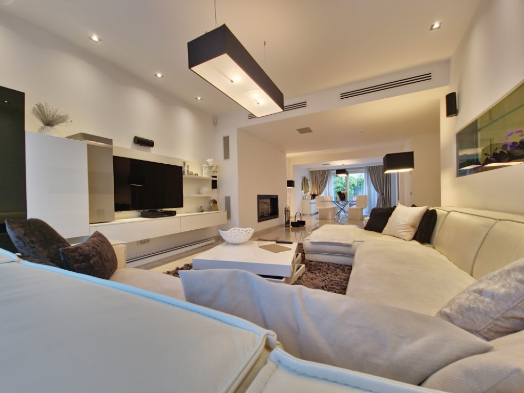Dotari precum  mobilier  Rovere, iluminat Philips, șemineu Spartherm, sistem de climatizare Daikin (prezent în întreaga casă), încălzire în pardoseală (restul casei dispune de calorifere), pardoseală din marmură, acvariu de 800 litri, videointerfon, monitorizare video pe exteriorul casei, iar curtea este pavată cu piatră naturală. Bucătăria are mobilier Veneta Cucine, cu fronturi din furnir natural, dotată cu două cuptoare (unul cu aburi și unul cu ventilație), iar toate electrocasnicele sunt Siemens.