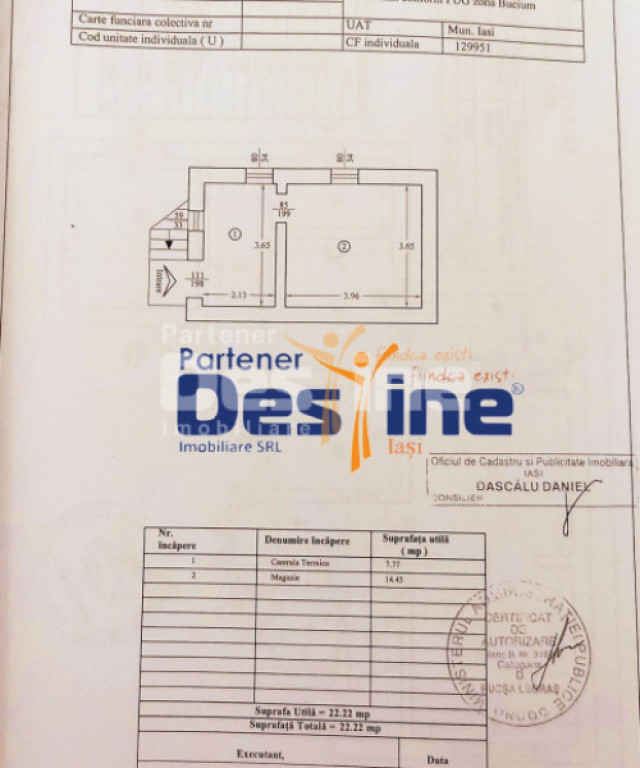 DESTINE IMOBILIARE vă recomandă spre vânzare: Vilă cu 6 camere – in cartierul BUCIUM, in spate la Lidl Preț: 360.000 €uro negociabil Informații utile despre proprietate: - Teren aferent proprieății 1000 mp, TEREN perfect drept - Edificată în anul 2005 - Suprafață utilă totală de 180 mp - Regim de înăltime: D+P+1+M - Front stradal de 23 ml ***Casă gândită și proiectată pentru a acomoda 2 familii sau o familie mai numeroasă.*** Compartimentare: - Demisol 22 mp - cameră tehnică + spațiu pentru depozitare - Parter 120 mp compus din 2 zone locative: 1 - living, bucătărie, dormitor, baie, hol | 2. bucătărie, dormitor, baie, hol - Etaj 58 mp - trei dormitoare, baie, hol, balcon și terasă - Mansardă : spațiu locuibil + spațiu pentru depozitare Avantajele locuinței: - Construită din CĂRĂMIDĂ, - Centuri și stâlpi din beton armat - Tencuită și anvelopată exterior - Tencuială decorativă de calitate superioară. - Acoperiș din țiglă CERAMICĂ - 2 CENTRALE termice prin condensare - 2 aparate de AER CONDOȚIONAT - Tâmplărie din PVC cu geam termopan - Tâmplărie interioară din lemn Alte imbunătățiri: - gard din fier forjat cu fundație din beton + gard frontal din cărămidă si țiglă - poartă acționată electric, culisantă + poartă pietonală din fier forjat - trotuare cu granit și pavele vibropresate - fântână cu apă, model tradițional - gradina amenajată cu gazon si pomi fructiferi - platformă cu 3 locuri de parcare - solar de legume (structura metalică foarte solidă, cu fundație beton - posibilitate reorganizare - 12m x 4,25m) - 2 anexe din BCA (9+27mp utili, racordate la Apavital, canalizare și curent electric). ! Locuința este racordată la TOATE UTILITĂȚILE, inclusiv canalizare ! Casa a fost gandită, proiectată si executată pentru confortul personal, folosindu-se doar materiale de calitate superioara. Este situată intr-o zonă de case, linistită, fără șantiere imprejur. NU NECESITĂ INVESTIȚII MAJORE ! Pentru vizionări sau informații suplimentare: Toni Galu - 0736.84.84.88 Cod ofertă: P-4596 !!! IMPORTANT: Brokerul nostru de credite Ofera asistență GRATUITĂ pentru obținerea creditului (ipotecar, Prima Casă, nevoi personale) prin parteneriatele noastre bancare. Contactați-ne pentru mai multe detalii! Id intern: P4596