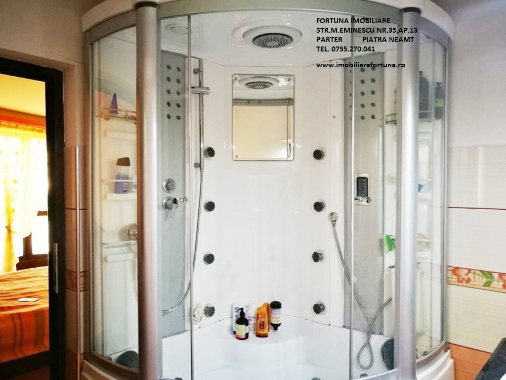 Daca doriti sa strangeti familia pentru a locui impreuna avem pentru dumneavoastra o propunere, Vila D+P+E+M, avand amprenta la sol de 134mp, suprafata desfasurata de 485mp, terasa de 5ml, teren 811mp, situate in Piatra Neamt. Imobilul este compartimentat astfel: -demisol: camera centralei, camara, bucatarie cu barbeque, camera mare pentru depozitare, baie - parter: livind generos si luminos, zona de dininig, baie, 2 bucatarii,casa scarii -etaj: 3 dormitoare prevazute cu baie proprie si dressing, hol generos - mansarda: 4 dormitoare, 2 bai. Imobilul este construit dupa anul 2015, folosindu-se materiale de cea mai buna calitate, tamplarie din termopan cu 5 camere, incalzire prin pardoseala integral(PARTER SI ETAJ, mansarda avand calorifere), centrala are circuite separate pentru fiecare nivel, gresie, faianta, usi interioare din lemn masiv, mobilier din lemn masiv, izolata exterior, foarte calduroasa si primitoare. Se vinde mobilata si utilata (partial) la pretul de 285.000 Euro . Vizionarile se fac doar pe baza de programare, tel 0755.270.041. Pentru mai multe informatii va invitam la biroul nostru situat pe str.M.Eminescu nr.35,ap.13, langa fostul Tribunal. Oferta noastra completa o gasiti aici: https://imobiliarefortuna.ro/