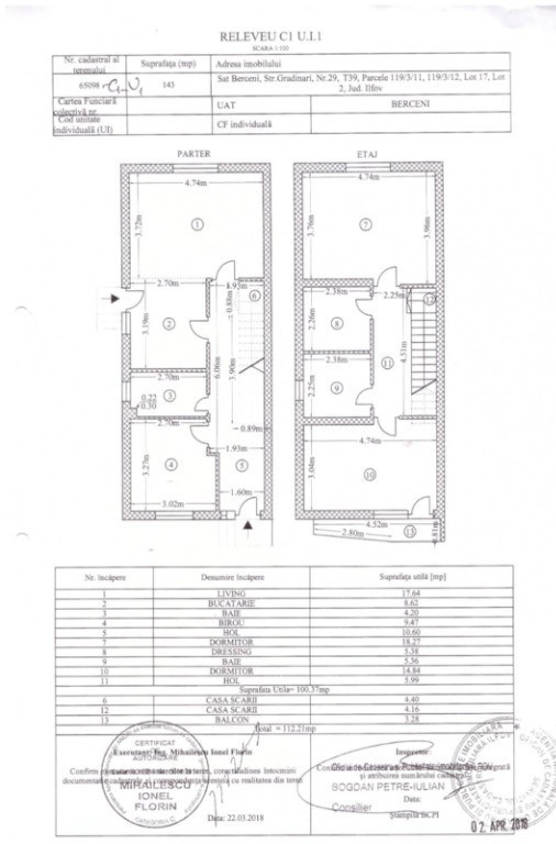 Pentru toți cei care sunt in căutarea unei case de vis, avem deosebita plăcere de a va prezenta aceasta resedinta situata la 800 m de Bulevardul 1 Mai,scoala,gradinita si magazine, in Comuna Berceni. COMISION 0% PENTRU CUMPARATOR! Casa dispune de un teren în suprafață de 200 mp, regim de înălțime P+1 E,și o suprafață de 100 mp,fiind compartimentata astfel: -PARTER:hol,living,bucatarie,dormitor,grup sanitar. -ETAJ:hol,2 dormitoare, grup sanitar,dressing, balcon. TERASA,INCALZIRE IN CALORIFERE. Imobilul se vinde la cheie cu finisaje complete: faianta, gresie, parchet, usi interioare si obiecte sanitare . - Imobilul poate fi achizitionat atat din surse proprii, cat si prin credit bancar ! -Consultanta financiară gratuita ! Pentru a afla toate detaliile care conteaza pentru tine , ai la dispozitie un consultant dedicat , care iti va fi alaturi si te va ghida in a lua o decizie informata . ELENA