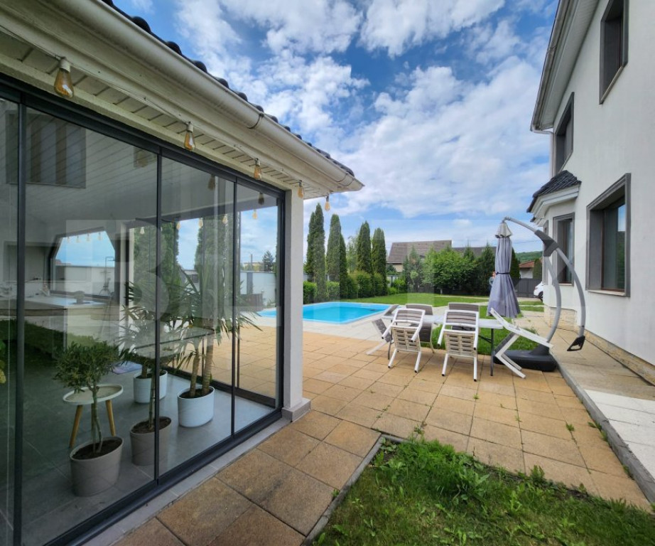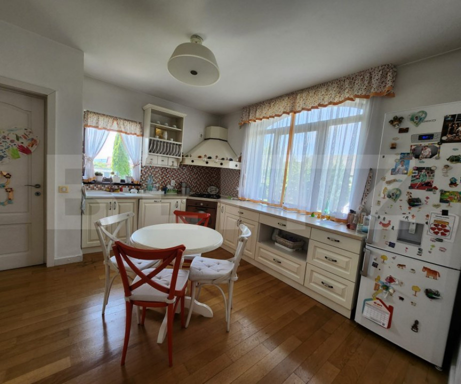 BLITZ IMOBILIARE vă oferă spre vânzare o vilă exclusivistă, ideală pentru cei care își doresc un cămin elegant, spațios și complet utilat, într-o zonă liniștită, cu aer curat și intimitate deplină. ???? Detalii proprietate: Suprafață utilă: 300 mp Suprafață teren: 1300 mp Construcție solidă din cărămidă Porotherm 28 cm, cu izolație exterioară din polistiren de 10 cm 4 camere, dintre care una en-suite, cu baie proprie și dressing generos Living spațios Bucătărie complet utilată + cămară separată 3 băi moderne Cameră de spălătorie Cameră tehnică Pod izolat cu vată bazaltică (20 cm) ????♂️ Zona de relaxare exterioară: Piscină dotată cu pompă de căldură și aspirator automat Bucătărie de vară absolut de vis, cu geamuri mari și acces direct către piscină – ideală pentru petreceri sau cine relaxante Gazon cu sistem de aspersoare automatizat Mult spațiu verde, perfect pentru relaxare în zilele călduroase de vară ???? Dotări și finisaje premium: Geamuri tripan – confort termic și fonic de top Încălzire în pardoseală: parter (living) + băile de la etaj + Calorifere Centrală pe gaz + centrală pe lemne Pufăr de 300 litri Șemineu cu focar închis, ideal pentru seri relaxante Uși și scară din lemn masiv de stejar Parchet din lemn masiv, finisaje rafinate Casă complet mobilată și utilată, cu mobilier de calitate superioară ???? Anexe și facilități suplimentare: Grătar zidit și cuptor pe lemne pentru gătit tradițional Spațiu de depozitare pentru lemne Garaj dublu cu ușă electrică culisantă și pod de depozitare ➕ Opțional: Teren adiacent de 900 mp, disponibil separat la prețul de 100.000 EUR ✅ Această vilă nu este doar o locuință – este o experiență de viață. Ideală pentru familii care apreciază spațiul, confortul, rafinamentul și funcționalitatea – totul înconjurat de natură și liniște. ???? Programează acum o vizionare! Contactează-ne pentru mai multe informații – proprietăți ca aceasta sunt rare și foarte căutate! Cod ofertă / ID BLITZ: P145942 Id intern: P145942