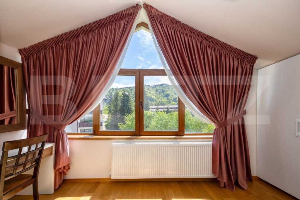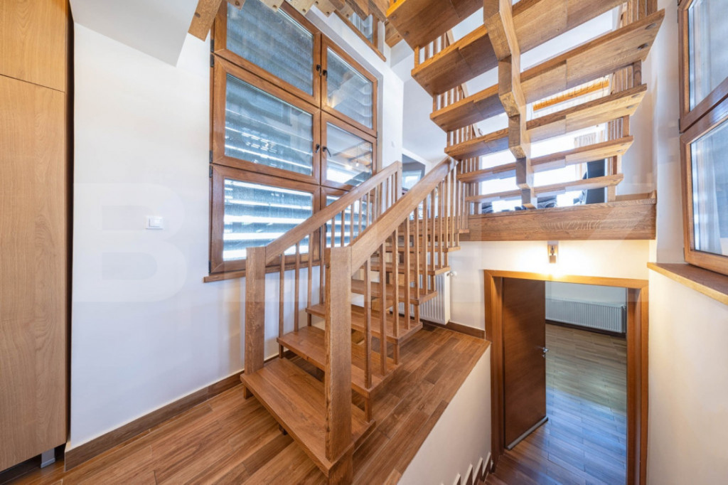 Descoperiţi o vilă exclusivistă cu 6 camere, cu panoramă spectaculoasă spre munţii din Predeal — o oportunitate rară pentru cei care caută confort, intimitate și eleganță într-un cadru natural de vis. Această proprietate este ideală atât ca locuință permanentă de lux, cât și ca refugiu de weekend sau casă de vacanță pentru întreaga familie. Această locuință spațioasă și luminoasă, cu o compartimentare practică, este proiectată pentru a oferi confort pe tot parcursul anului. Casa a fost construită cu materiale de calitate superioară și atenție la detalii. Compartimentare și suprafețe -Suprafață utilă: 225 mp -Teren: 461 mp -Dormitoare: 4 -Living-uri: 2 spațioase -Băi: 3 complete + 1 toaletă de serviciu -Balcoane: 3 -Alte spații: cameră tehnică cu spații de depozitare Compartimentare pe semi-nivele: -Demisol: cameră tehnică, cabinete depozitare -Parter: bucătărie complet utilată, baie de serviciu -Semi-Nivel 1: living open, balcon -Semi-Nivel 2: dormitor, baie, balcon -Semi-Nivel 3: living open, balcon -Semi-Nivel 4: dormitor, baie -Mansardă: 2 dormitoare, baie Dotări și facilități: -Bucătărie complet utilată, cu echipamente moderne -Scară interioară din lemn masiv de stejar -Primul living cu șemineu pentru momente relaxante -Al doilea living ideal pentru billiard/tenis de masă, cu acces la balcon pentru priveliști montane -Geamuri termopan cu tâmplărie PVC -Pardoseli din lemn masiv în toate încăperile -Sistem de monitorizare CO2 și sistem de alarmă -Centrale termice pe gaz la demisol -Branșament electric trifazic și generator electric instalat - Terasa cu zonă de barbeque și căsuță de grădină Stare și mobilare: -Imobilul se vinde parțial mobilat și utilat -Posibilitate achiziție prin surse proprii sau finanțare bancară Dotări principale: Sistem de alarmă, sistem de monitorizare CO2, șemineu, 3 balcoane, generator electric, curent trifazic. Cod ofertă / ID BLITZ: P159086 Id intern: P159086