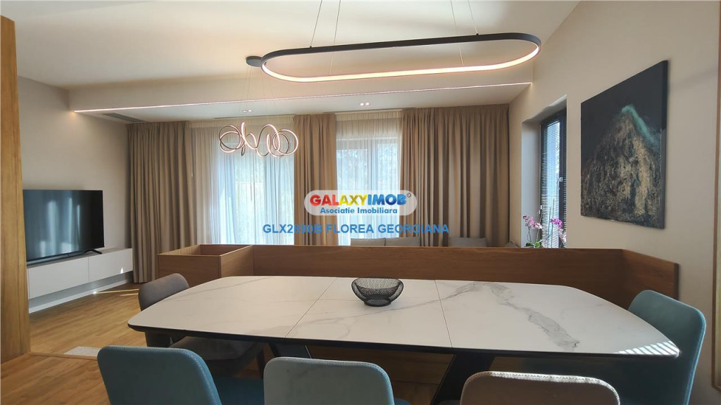 Vila premium de inchiriat - Otopeni - complex privat - constructie 2024 - 180 mp utili - curte amenajata Disponibila spre inchiriere este o vila moderna, finalizata in 2024, situata in Otopeni, zona strada Munteniei, intr-o comunitate privata formata din doar 6 vile, cu acces controlat si un cadru rezidential exclusivist. Proprietatea a fost amenajata cu ajutorul unui designer, cu multa atentie la detalii, pentru a crea o casa eleganta, primitoare si foarte confortabila (cosy), ideala pentru o familie care isi doreste un standard ridicat de locuire. Suprafata utila a vilei este de aproximativ 180 mp, la care se adauga o terasa de 20 mp si o curte privata amenajata peisagistic, oferind un spatiu exterior perfect pentru relaxare. Compartimentare: - living generos, cu canapea mare si televizor de dimensiune foarte mare - zona de dining cu masa ampla si locuri suficiente, potrivita atat pentru o familie numeroasa, cat si pentru intalniri sau evenimente cu prietenii sau familia - bucatarie inchisa cu perete de sticla, complet mobilata si utilata, dotata cu toate electrocasnicele necesare unei locuinte de acest tip - 3 dormitoare la etaj - dormitor matrimonial cu dressing si baie proprie - mansarda open space, amenajata cu zona de dormit si un spatiu amplu de recreere - 4 bai in total, pe fiecare nivel Spatii auxiliare si depozitare: - numeroase spatii de depozitare integrate in intreaga casa - camera tehnica dotata cu masina de spalat rufe, uscator si frigider suplimentar Exterior si parcare: - curte privata amenajata peisagistic - terasa de 20 mp - 2 locuri de parcare dedicate - 1 loc de parcare pentru vizitatori Dotari si finisaje premium: - panouri fotovoltaice - sistem HAC (incalzire / racire) - centrala termica proprie - boiler de capacitate mare - mobilier premium (Miso, Rovere, BoConcept) - usi filomuro - parchet cu rasina - locuinta complet mobilata si utilata Proprietatea este situata intr-o zona exclusiv de vile, foarte linistita si aerisita, cu acces rapid catre zona de nord a Bucurestiului, aeroport, centre de business si zone comerciale. Vila este ideala pentru rezidenta unei familii sau pentru expati care cauta confort, intimitate si un standard ridicat de locuire. Pret de inchiriere: 1.750 EUR / luna, garantie: valoarea unei chirii, comision agentie: 50% Informatii eficienta energetica: Clasa energetica: Consumul de energie primara: Indicele de emisii echivalent CO2: Consum de energie din surse regenerabile: