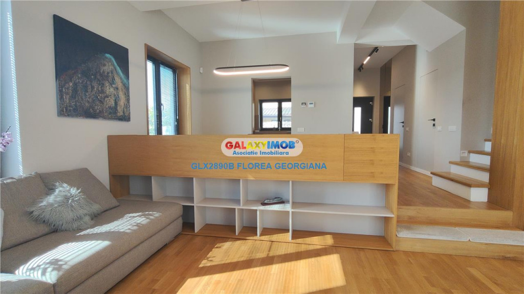 Vila premium de inchiriat - Otopeni - complex privat - constructie 2024 - 180 mp utili - curte amenajata Va propunem spre inchiriere o vila moderna, finalizata in 2024, situata in Otopeni, zona strada Munteniei, intr-o comunitate privata formata din doar 6 vile, cu acces controlat si un cadru rezidential exclusivist. Proprietatea a fost amenajata cu ajutorul unui designer, cu multa atentie la detalii, pentru a crea o casa eleganta, primitoare si foarte confortabila (cosy), ideala pentru o familie care isi doreste un standard ridicat de locuire. Suprafata utila a vilei este de aproximativ 180 mp, la care se adauga o terasa de 20 mp si o curte privata amenajata peisagistic, oferind un spatiu exterior perfect pentru relaxare. Compartimentare: - living generos, cu canapea mare si televizor de dimensiune foarte mare - zona de dining cu masa ampla si locuri suficiente, potrivita atat pentru o familie numeroasa, cat si pentru intalniri sau evenimente cu prietenii sau familia - bucatarie inchisa cu perete de sticla, complet mobilata si utilata, dotata cu toate electrocasnicele necesare unei locuinte de acest tip - 3 dormitoare la etaj - dormitor matrimonial cu dressing si baie proprie - mansarda open space, amenajata cu zona de dormit si un spatiu amplu de recreere - 4 bai in total, pe fiecare nivel Spatii auxiliare si depozitare: - numeroase spatii de depozitare integrate in intreaga casa - camera tehnica dotata cu masina de spalat rufe, uscator si frigider suplimentar Exterior si parcare: - curte privata amenajata peisagistic - terasa de 20 mp - 2 locuri de parcare dedicate - 1 loc de parcare pentru vizitatori Dotari si finisaje premium: - panouri fotovoltaice - sistem HAC (incalzire / racire) - centrala termica proprie - boiler de capacitate mare - mobilier premium (Miso, Rovere, BoConcept) - usi filomuro - parchet cu rasina - locuinta complet mobilata si utilata Proprietatea este situata intr-o zona exclusiv de vile, foarte linistita si aerisita, cu acces rapid catre zona de nord a Bucurestiului, aeroport, centre de business si zone comerciale. Vila este ideala pentru rezidenta unei familii sau pentru expati care cauta confort, intimitate si un standard ridicat de locuire. Pret de inchiriere: 1.950 EUR / luna, garantie: valoarea unei chirii, comision agentie: 50% Informatii eficienta energetica: Clasa energetica: Consumul de energie primara: Indicele de emisii echivalent CO2: Consum de energie din surse regenerabile: