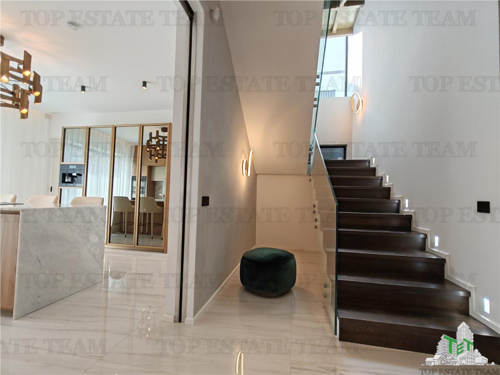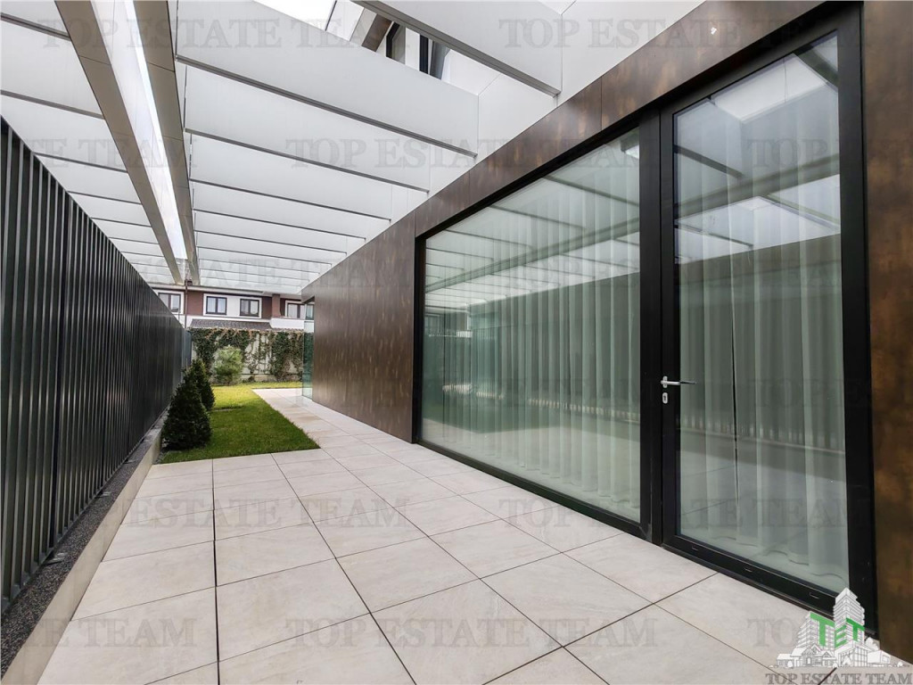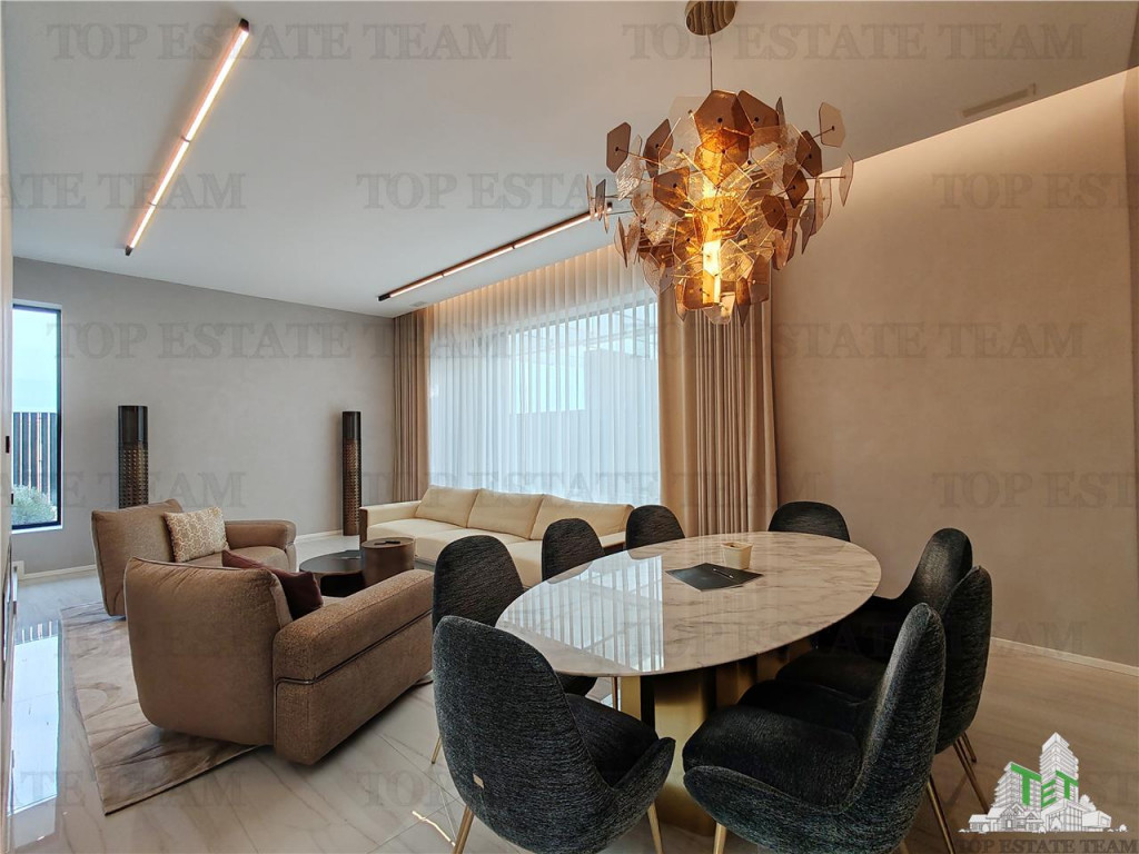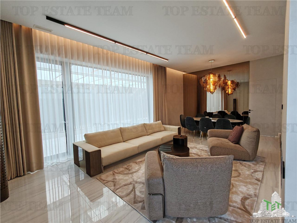 Excelenta prin experienta! Proprietate unica in Romania, situata vis a vis de scoala Americana, un de lux in care fiecare detaliu e lucrat cu maxim atentie. Camerele sunt inundate de lumina datorita suprafetelor vitrate foarte mari si inaltimilor libere de 3m, iar sistemul smart-home e generator de un plus de confort: controleaza tot ce inseamna lumini, curent, apa si usi. Pozitionarea ofera acces facil catre cele mai bune scoli din Bucuresti, numeroase magazine precum Lidl si Mega Image, iar Baneasa Shopping City este la doar 10 minute cu masina. In cateva minute poti ajunge la cele mai bune restaurante din Bucuresti pentru o experienta de fine dinning alaturi de prietenii tai sau pentru o intalnire de afaceri. Pompa de caldur instalat pentru racire, incalzire si preparare apa calda menajera dotata cu boiler de 165 L - 5-22 kW; Sistem de incalzire in pardoseala premium, montat la pas de 10 cm. Temperatura constant a pardoselii indiferent de temperatura mediului ambiant; Sistem de tavane racite; Sistem de ventilatii mecanice dotat cu recuperator de caldura dotat cu dispozitive pentru igienizarea si decontaminarea conductelor de ventilatie; Curenti tari si slabi: Sistem antiefractie dotat cu bariere laser, senzori magnetici mascati in tamplarie si camere video pentru exterior, videointerfon; Sistem Smart Home pentru iluminat interior si exterior, sistem audio, uss intrare, acces in garaj, control seminee, jacuzii si sauna, control irigatii. Toate sistemele automizate pot fi controlate prin voce sau prin intermediul aplicatiei instalate pe smartphone; Instalatie de curenti tari realizata cu materiale calitative si durabile; Priza pentru incarcare autovechicul montata in garaj. Casa se ofera spre vanzare mobilata/utilata la cerere. Tranzactioneaza cu noi si ai primul transport de mobila gratuit in Bucuresti/Ilfov!