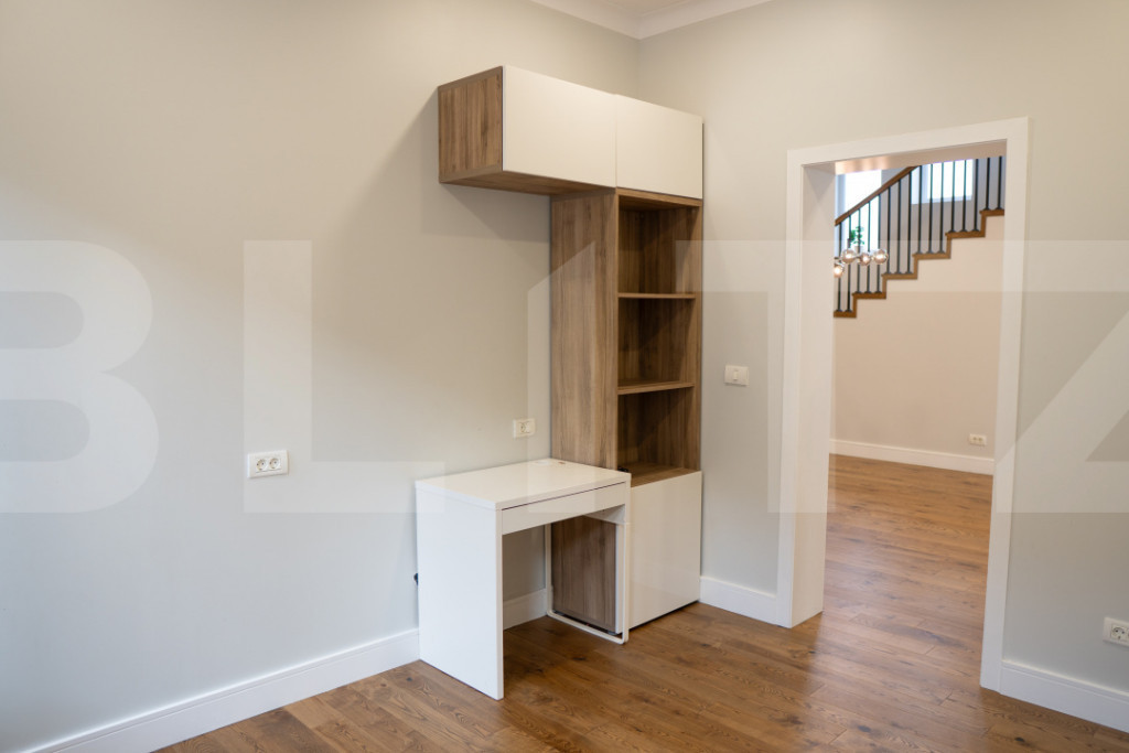 Blitz vă propune, în regim exclusiv, o proprietate rară pe piață: o vilă modernă, construită la standarde superioare, situată în una dintre cele mai apreciate zone rezidențiale din Vladimirescu, Arad. Această casă impresionează prin materialele premium folosite, tehnologiile integrate de ultimă generație și terenul generos de 1250 mp, ideal pentru cei care caută confort, eficiență energetică și intimitate. Detalii tehnice și constructive, nivel premium: -Izolație exterioară cu vata bazaltică de 10 cm -Pod izolat cu două straturi de izo extrudată (2×5 cm) -Tavane din beton + tavan fals din rigips pentru eficiență și design -Sistem de ventilare cu recuperare de căldură – Sapiens, program eco cu reîmprospătarea aerului la 10 ore / mod „party” la 6 ore -Aspirator central (acces facil din toate zonele casei) -Șemineu pe lemne funcțional, capabil să contribuie semnificativ la încălzire -Termostat în fiecare cameră pentru control individual al temperaturii -Lavabil ceramic – finisaje superioare, rezistență crescută -Pompă de căldură apă–apă, cu puțuri la 40 m adâncime – eficiență energetică excelentă -Structură din BCA Ytong, placată ulterior cu rigips lipit direct pe zidărie -Geamuri tripan Veka 92 – izolație fonică și termică remarcabilă -Teren de 1250 mp, proprietate ideală pentru grădină, piscină, zonă de relaxare -256 mp utili, 380 mp construiți – spațiu amplu, bine organizat -Front stradal generos, acces facil -Puț în curte, sistem complet de irigare + fântână separată -Bucătărie dotată cu tocător de resturi (cu excepția alimentelor) -Robinet cu apă la nivelul aragazului – detaliu premium rar întâlnit Această proprietate este ideală pentru cei care apreciază calitatea construcției, tehnologiile moderne de eficiență energetică și confortul absolut. O vilă construită pentru a dura, gândită până în cele mai mici detalii și poziționată într-o zonă liniștită, cu acces rapid către Arad. Cod ofertă / ID BLITZ: P159694 Id intern: P159694