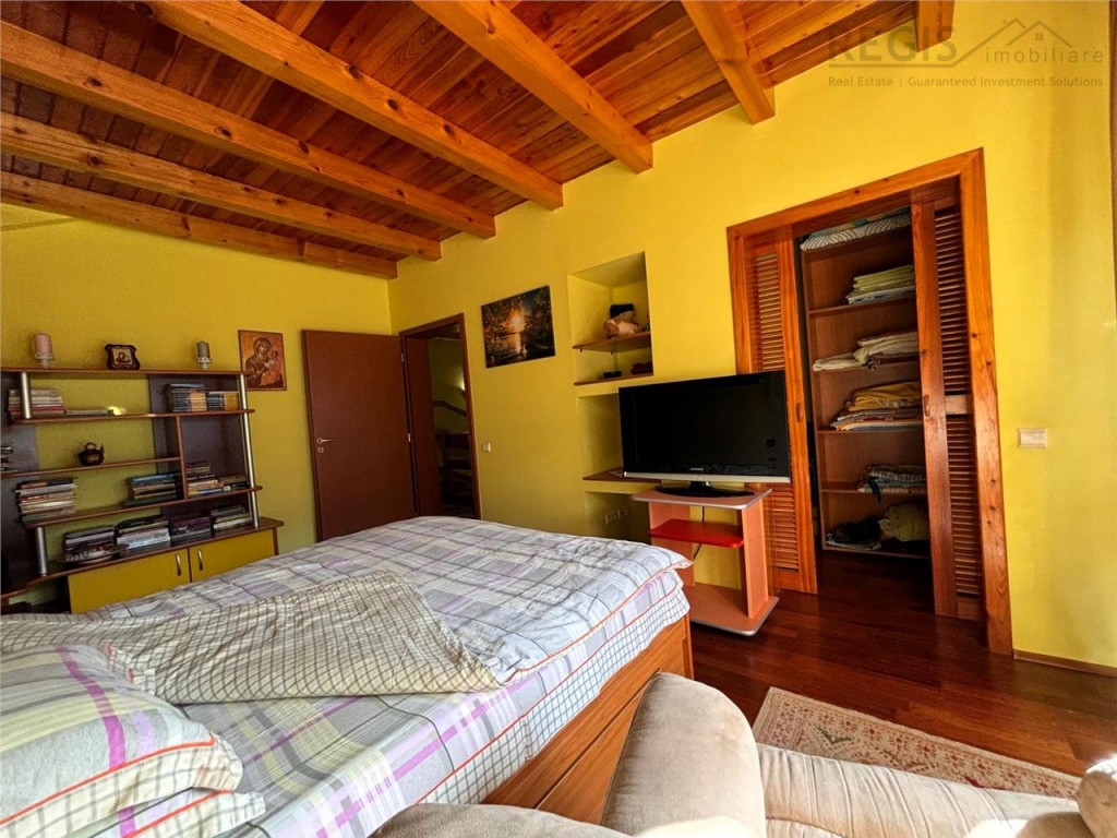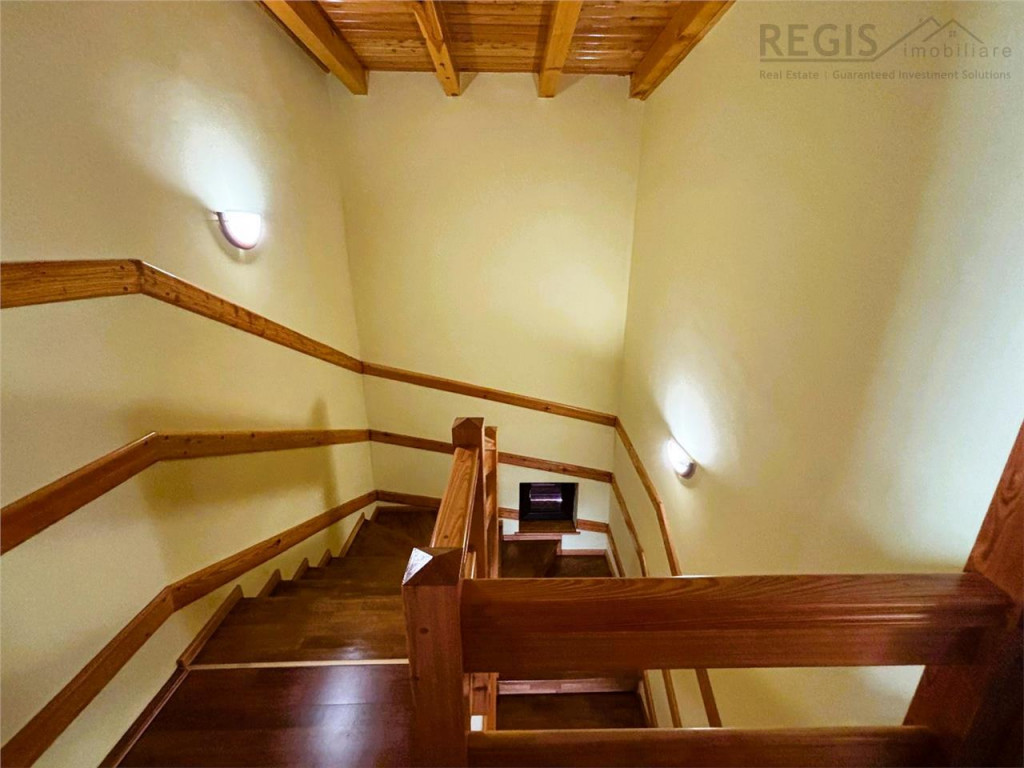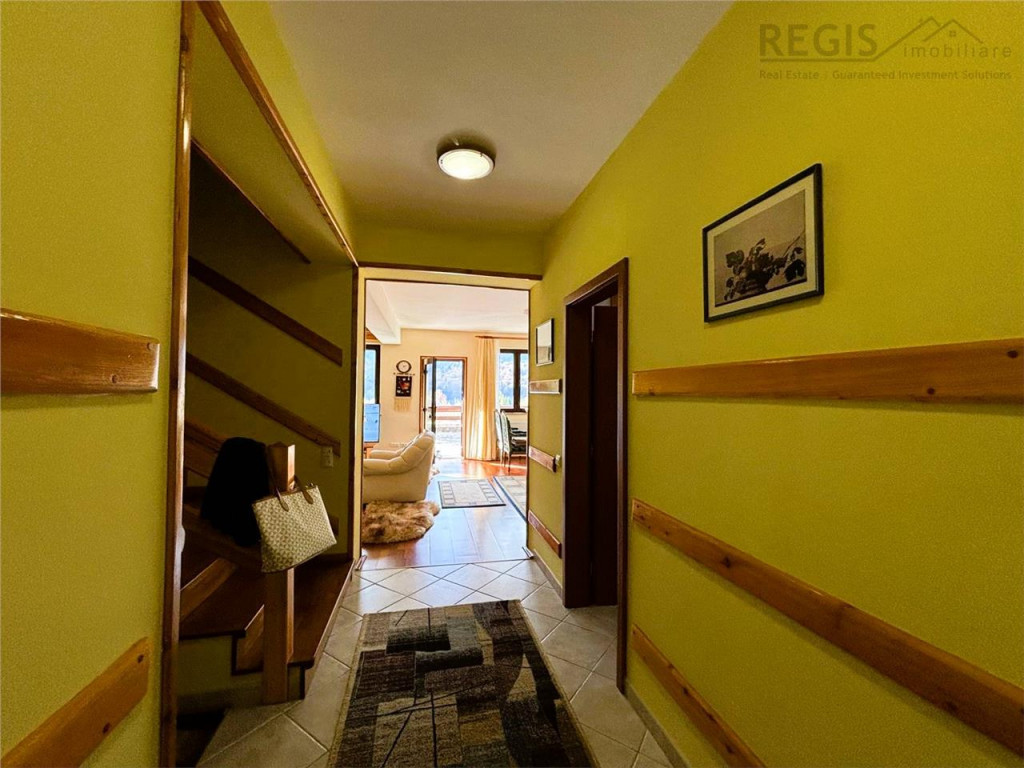 ID INTERN 5968 REGIS Imobiliare va prezinta spre vanzare o vila eleganta situata in Busteni, in cartierul Piatra Arsa, un loc renumit pentru liniste, peisaje montane impresionante si proximitatea fata de Masivul Bucegi. Cu o suprafata utila de 205 metri patrati si o curte frumos amenajata, aceasta proprietate este o alegere ideala pentru cei care isi doresc sa locuiasca intr-un cadru natural spectaculos, dar cu toate conforturile moderne. Vila beneficiaza de un garaj spatios si de un semineu pe lemne, perfect pentru serile racoroase de munte. Imobilul dispune de 205 metri patrati utili, oferind spatiu generos si bine compartimentat pentru intreaga familie, cu zone de zi si de odihna bine delimitate. Curtea este frumos amenajata cu alei pietruite, spatii verzi si poate fi folosita pentru relaxare sau evenimente in aer liber.Vila dispune de un garaj spatios, oferind siguranta pentru vehicule si spatiu suplimentar pentru depozitare. Construita din materiale de calitate, vila imbina eleganta cu robustetea necesara unei locuinte de munte, asigurand confortul necesar in toate anotimpurile. Finisajele interioare sunt realizate cu atentie la detalii, iar constructia in sine este solida, gandita pentru a rezista climei montane. Situata in cartierul Piatra Arsa, vila beneficiaza de o pozitie ideala, fiind intr-o zona linistita, dar cu acces facil la principalele atractii din Busteni si din imprejurimi. Aceasta vila din Busteni, cartierul Piatra Arsa, reprezinta o oportunitate rara pe piata imobiliara datorita pozitiei sale deosebite, a spatiului generos si a confortului oferit. Este o locuinta ideala atat pentru o rezidenta permanenta, cat si pentru vacante, oferind posibilitatea de a va bucura de frumusetile naturii montane intr-un cadru intim si confortabil. Pentru detalii suplimentare sau programarea unei vizionari,nu ezitati sa ne contactati! Comision agentie 2% TVA din valoarea de tranzactie!