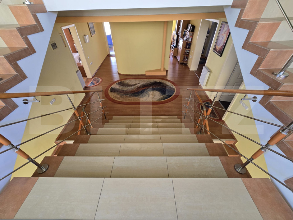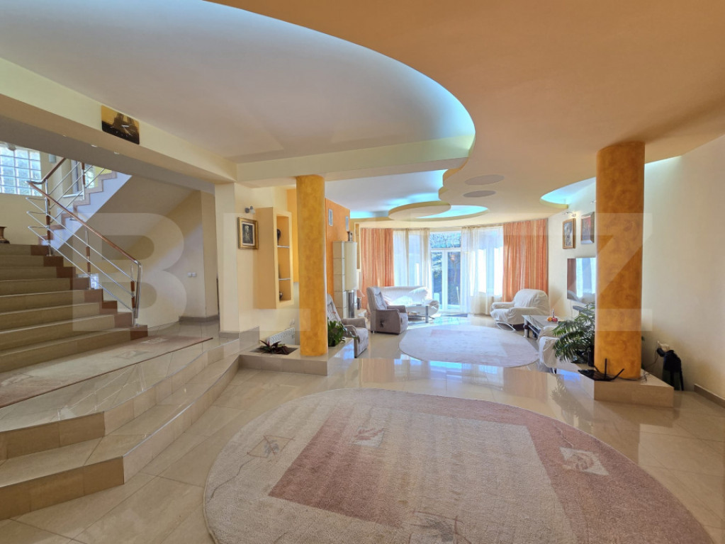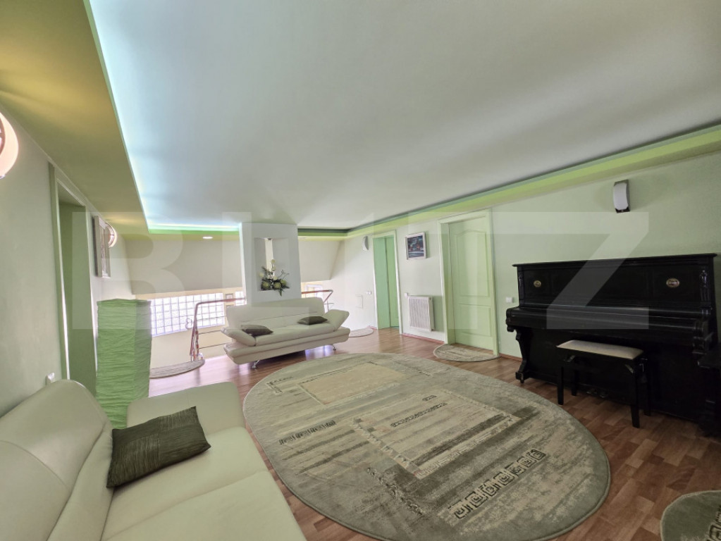 Va prezentam o proprietate deosebita, la limita cartierului Zorilor in spre Europa, situata intr-o zona rezidentiala exclusivista pe o strada linistita, ferita de agitatia traficului intens, dar in acelasi timp foarte bine conectata cu centrul orasului prin doua artere principale, ceea ce asigura acces rapid si facil catre toate punctele de interes ale Clujului. Detine o suprafata utila de 600 mp - din care 150 mp la demisol, si teren in propritate de1006 mp cu front de 30ml. Construita pe o structura solida din beton armat, cu pereti din caramida termoizolata, acoperis din tigla si compartimentare eficienta, vila imbina spatiile generoase cu functionalitatea si luminozitatea interioarelor, fiind o solutie ideala atat pentru o familie numeroasa care isi doreste o locuinta eleganta si confortabila, cat si pentru cei care cauta un spatiu potrivit pentru activitati medicale, educationale sau de birouri. Proprietatea este dispusa pe demisol, parter, etaj si mansarda, oferind multiple zone de utilizare. La demisol regasim: - un garaj incapatoar -patru camere secundare, din care una sala de fitnes -o baie, -doua spatii pentru depozitare si holuri de acces, ideale pentru organizarea eficienta a spatiului. - o garsoniera cu intrare separata. Parterul reprezinta zona de zi a casei si se remarca printr-un living extrem de generos cu semineu, completat de o zona de dining luminoasa, o bucatarie spatioasa, un birou, o camara, o bucatarie secundara doua camere suplimentare, o baie si un hol larg ce face legatura intre incaperi, precum si o terasa cu acces direct in gradina, perfecta pentru momente de relaxare in aer liber. La etaj se afla patru dormitoare confortabile, trei bai, debara , sas , dressing si o terasa cu vedere deschisa, care aduce un plus de intimitate si rafinament. Mansarda este configurata cu doua dormitoare si doua bai, oferind un spatiu suplimentar ce poate fi utilizat atat pentru locuire, cat si pentru diverse activitati profesionale sau recreative. Confortul este asigurat prin sistemul de incalzire pe baza de centrala termica pe gaz, calorifere si boiler, la care se adauga semineul din living si instalatiile de aer conditionat deja montate. Ferestrele si usile exterioare din termopan contribuie la izolarea termica si fonica, iar curtea amenajata cu zona verde, arbusti si acces auto pavat completeaza imaginea unei proprietati care ofera atat eleganta, cat si functionalitate. Aceasta vila impresioneaza prin suprafata generoasa, calitatea materialelor, compartimentarea practica si localizarea premium din zona Zorilor - Europa, ceea ce o face extrem de versatila. Fie ca va doriti sa o transformati intr-un camin confortabil pentru o familie extinsa, intr-o clinica medicala moderna, intr-un sediu reprezentativ pentru o companie sau intr-un spatiu de birouri adaptat cerintelor actuale, aceasta proprietate ofera cadrul ideal pentru a raspunde oricarei nevoi. Pentru mai multe detalii suplimentare, nu ezitati sa ne contactati! Cod ofertă / ID BLITZ: P166050 Id intern: P166050