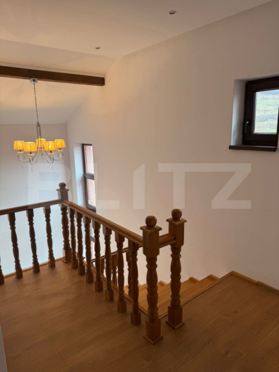 Blitz vă propune spre vânzare o proprietate deosebită, o vilă individuală în stil Californian, situată într-o zonă liniștită, între Gherla și Fizeșu Gherlii, înconjurată de natură și cu priveliști panoramice spre dealurile din jur. Imobilul impresionează prin spații generoase, luminozitate excelentă și o compartimentare practică, fiind ideal pentru o familie care își dorește confort, intimitate și un stil de viață relaxat. Suprafața utilă este de 220 mp, la care se adaugă spații conexe de aproximativ 75 mp (garaj, terase, anexă lemne) și un pod de 60 mp. Proprietatea este amplasată pe un teren generos de 3000 mp, oferind multiple posibilități de amenajare. ✨ Compartimentare - Parter: zonă de zi open-space (aprox. 71 mp) compusă din: bucătărie deschisă, modernă, cu insulă și loc pentru 5 persoane living luminos, cu acces direct la terasă dining elegant, integrat armonios în spațiu dormitor matrimonial (24 mp) cu dressing și acces către terasă și grădină dormitor de oaspeți (17 mp), cu acces separat din exterior baie spațioasă (8 mp), dotată cu cadă și duș cameră tehnică + mudroom (11 mp), cu acces direct în garaj cămară (5 mp), prevăzută cu geam pentru aerisire holuri generoase și bine organizate -Spații exterioare și anexe: terasă acoperită (25 mp), ideală pentru relaxare, cu priveliște superbă terasă descoperită (12 mp) garaj (22 mp), cu ușă automatizată lemnărie (15 mp) - Etaj: 2 dormitoare spațioase (23 mp și 14 mp) balcon cu vedere panoramică baie modernă (6 mp), cu duș hol generos și casă a scării pod (60 mp), ideal pentru depozitare - Dotări și beneficii construcție solidă, bine întreținută sistem de încălzire mixt: centrală pe GPL (rezervor 3000L) centrală pe lemne boiler pentru apă caldă (electric sau conectat la centrale) sistem de securitate complet (alarmă + supraveghere video) poartă și garaj automatizate lumină naturală excelentă în toate încăperile Localizare Proprietatea este situată într-o zonă deosebit de liniștită, cu acces facil către Gherla, oferind în același timp intimitate, aer curat și multiple posibilități de relaxare în natură. ???? Ideală pentru o familie care își dorește spațiu, confort și un stil de viață echilibrat, aproape de natură. ???? Pentru mai multe detalii sau pentru programarea unei vizionări, vă stăm cu drag la dispoziție! Cod ofertă / ID BLITZ: P168093 Id intern: P168093