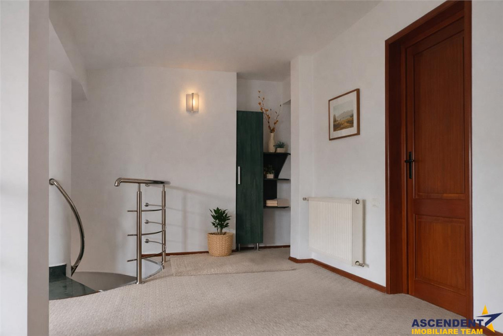ASCENDENT IMOBILIARE Propune spre vanzare o vila minunata pozitionata in zonare exclusiv rezidentiala, in zona Drumul Poienii cu un view superb. Resedinta dispune de finisaje de calitate, cu spatii generoase si luminoase, amenajata cu o curte individuala si garaj propriu,6 camere 3 bai 2 bucatarii, spatii de recreere, zona de Grill. Imobilul se prezinta integral mobilat si utilat. Rezidenta dispune de toate imbunatatirile si finisaje premium, curte individuala, pregatita pentru o noua familie. Infrastructura este excelenta, fiind pozitionata la 5 minute de centrul istoric al orasului si 15 minute de Poiana Brasov. Proprietatea ce se desfasoara pe o suprafata utila de 250 mp, este inconjurata de generoasa curte si o frumoasa gradina de 900 mp, ambientata cu brazi. Oferta se prezinta cu o arhitectura particulara, ce asigura originalitate dar si o deplina functionalitate a cladirii, iar odata ce i-ai trecut pragul, aceasta iti daruieste sentimentul de regalitate, pe care fiecare din noi ne dorim sa il experimentam. Unicitatea si elementele exclusiviste te insotesc la fiecare pas. Desigur ca acesta oferta invita la cunoasterea in detaliu, de aceea va stam la dispozitie cu acestea. Consilieri specializati pe aleasa oferta: domnul Silviu Basturea Telefon/ WhatsAp: 0723984811 si domnul Marius Pop Telefon/ WhatsApp: 0770154569