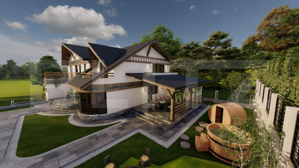 Blitz imobiliare va propune spre vanzare Vila cu potențial turistic în inima zonei montane Voroneț, o proprietate generoasă, gândită inteligent pentru a îmbina confortul unei locuințe spațioase cu oportunitatea dezvoltării unei afaceri în turism. Cu o suprafață utilă de 287 mp, imobilul oferă o compartimentare ideală pentru regim de pensiune, având nu mai puțin de 7 dormitoare și multiple spații de relaxare. Parterul este dedicat zonelor de zi, cu două livinguri luminoase ce pot servi atât ca spații comune pentru oaspeți, cât și pentru relaxare în familie, completate de bucătărie, două dormitoare și două băi. Etajul continuă armonios cu încă 5 dormitoare, oferind capacitate generoasă de cazare. Proprietatea este completată de un demisol funcțional, unde regăsim un garaj de 65 mp și pivniță, precum și de spații exterioare atractive: două terase și două balcoane, ideale pentru a valorifica priveliștea naturală a zonei. Amplasarea este un real avantaj — într-o zonă liniștită, cu pensiuni în vecinătate, ceea ce confirmă potențialul turistic al locației. Panorama și aerul de munte creează cadrul perfect pentru relaxare. Construcția este realizată din cărămidă, cu etaj din lemn pentru optimizarea structurii, iar finisajele interioare sunt gândite pentru funcționalitate și estetică: tâmplărie PVC cu geam termopan și pereți finisați cu rigips pentru suprafețe perfect drepte. Accesul este facil, pe drum asfaltat până în apropierea proprietății. Această proprietate reprezintă o oportunitate excelentă atât pentru investiție, cât și pentru o locuință personala într-un cadru natural deosebit. Cod ofertă / ID BLITZ: P168664 Id intern: P168664