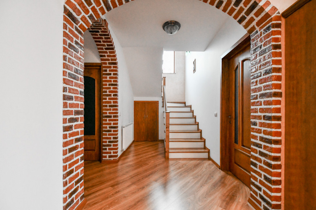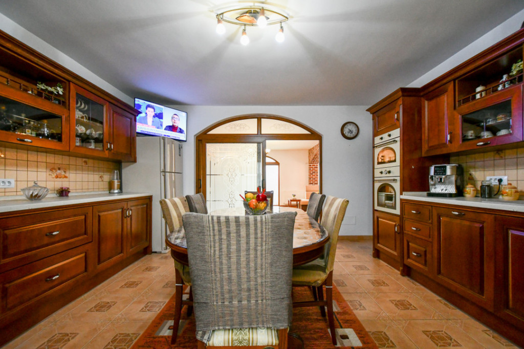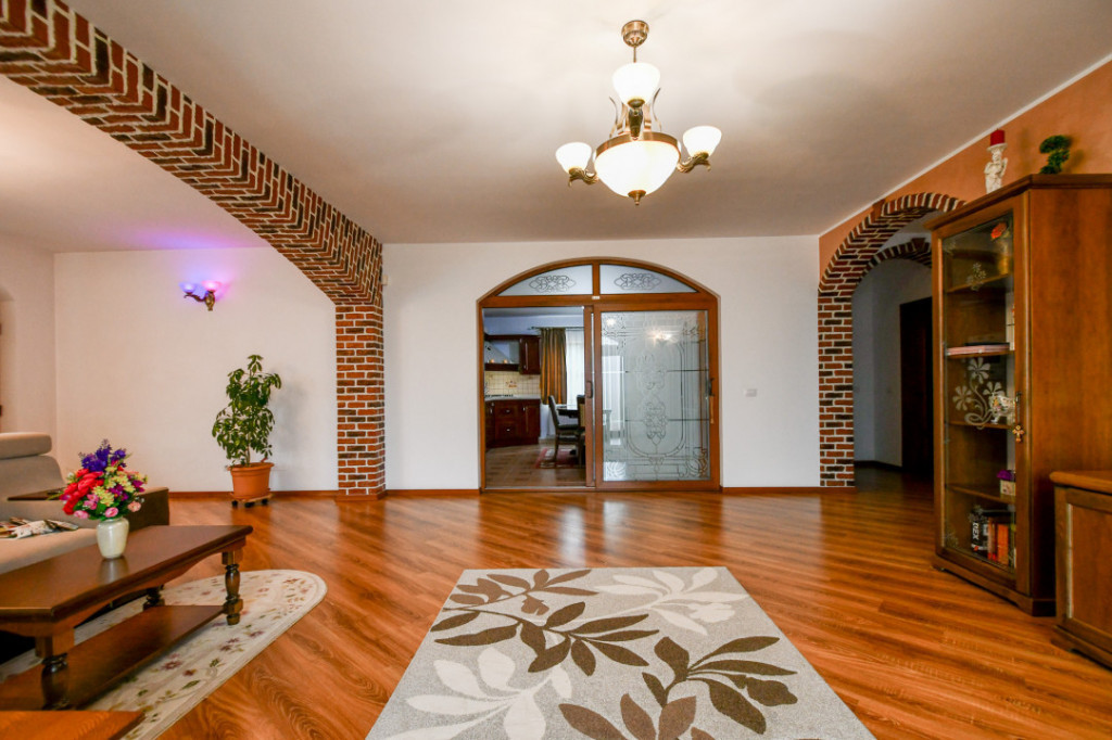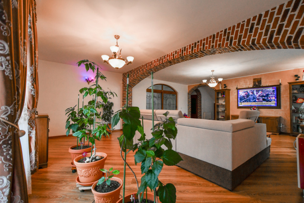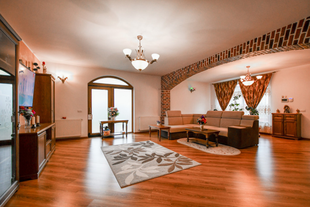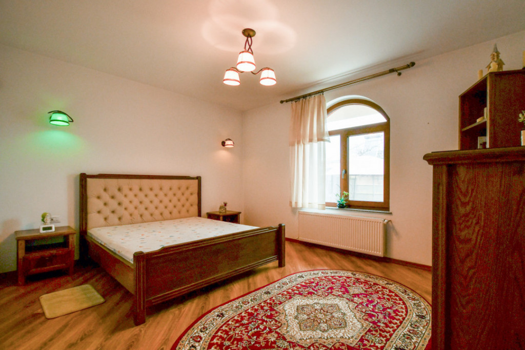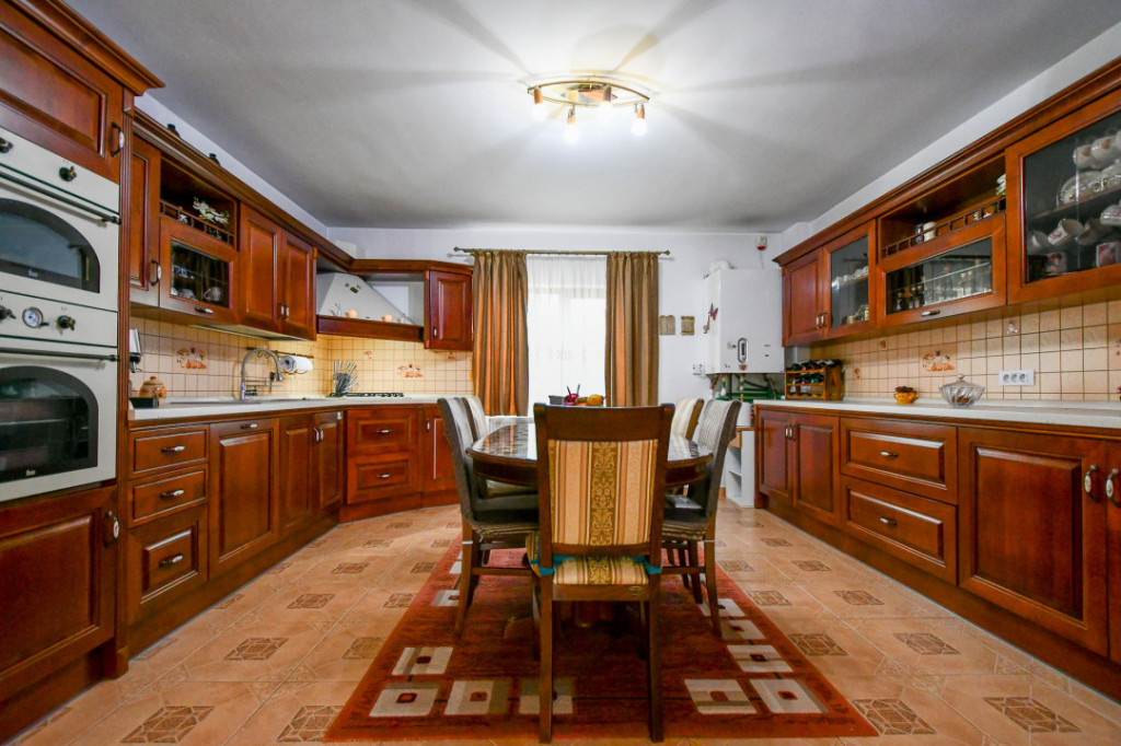 Va rog sa cititi cu atentie textul de prezentare! Pentru un set complet cu 55 fotografii si planuri de compartimentare, contactati agentul! Daca va bucurati de o familie numeroasa si va doriti o proprietate independenta energetic, cu certificat prosumator, teren pe colt, finisaje de actualitate, vecinatati civilizate si acces rapid catre punctele de interes urban, cu COMISION 0% PENTRU CUMPARATOR Va oferim spre achizitie o vila situata in cartierul Medeea pe str. Spiru Haret colt cu str. Locomotivei, compusa din Subsol partial – Parter – Etaj si Pod mansardat, ce dispune de un teren generos in suprafata totala de 427mp cu deschidere stradala pe colt 20,49m x 20,13m si pozitionare cardinala Sud-Est asigurand o luminozitate excelenta pe tot parcursul zilei. Vila a fost construita in anul 2015, are amprenta la sol de 177,80mp + 2,50mp WC exterior (curte libera 246,70mp), suprafata utila desfasurata 394,60mp la care se adauga o terasa si 2 balcoane cu urmatoarele suprafete 7,20mp – 7,70mp si 14,70mp (total suprafata utilizabila 424,20mp) si o suprafata construita desfasurata de 562mp, cu urmatoarea compartimentare interioara : Subsol – Camera depozitare si casa scarii – Total util 22,90mp; Parter – Antreu, living cu iesire pe terasa si in curte, dormitor, bucatarie, baie, dressing, garaj, hol si casa scarii – Total util 138,40 + 7,20mp terasa; Etaj – Hol de acces cu 2 dressing-uri, 3 dormitoare (fiecare cu iesire in balcon), baie, birou, 2 balcoane si casa scarii – Total util 126,40mp + 22,40mp balcoane; Pod mansardat – Zona hobby, 4 spatii depozitare, baie si casa scarii – Total util 106,90mp. Detalii tehnice de construire, dotari si finisaje: Constructia este realizata pe structura independenta de cadre din beton armat cu subsol realizat integral din beton armat cu cota de fundare 4,40m pe perna de piatra compactata, impermeabilizat si termoizolat cu strat bitum cauciucat, polistiren extrudat 5cm, strat caramida, membrana tefond si inca un rand de polistiren extrudat 5cm. Zidaria exterioara realizata din caramida Porotherm cu 8 celule (27cm) izolata exterior cu polistiren expandat 10cm finisat cu tencuiala decorativa structurata siliconata si placari caramida aparenta si zidarie interioara din caramida 20cm, ceeace asigura izolare fonica si termica superioara. Acoperisul este realizat in sistem asterial cu lemn ignifugat, bazie din lemn de fag lacuit cu jgheaburi de scurgere si burlane ingropate, invelit cu tigla metalica vopsita antistatic pe ambele parti si termoizolat in 2 straturi - polistiren extrudat (10cm) si vata minerala cu folie aluminiu anticondens (5cm), finisat interior cu rigips verde antiumezeala. Proprietatea dispune de un put forat (37m adancime din care 12m de apa) dotat cu hidrofor, care alimenteaza sistemul de irigatie automatizat cu 13 aspersoare si instalatie picurator cu panou de comanda/automatizare si sistem bypass pentru alimentare casa in caz de necesitate/urgenta. Curtea este amenajata cu alei placate cu piatra naturala import Italia montata pe pat de beton armat cu plasa sudata de Buzau (conferind rezistenta ridicata in timp si stabilitate), zone gazon, flori, pomi si plante ornament, grup sanitar de curte construit din zidarie BCA placat integral cu piatra naturala cu acoperis tigla metalica si sistem solar pentru apa calda menajera, zona foisor cu toate instalatiile necesare trase, robinet de curte, sifoane colectoare si rigole scurgere ape pluviale, gard perimetral din zidarie BCA cu structura din beton armat finisat cu tencuiala decorativa siliconata + interior placat cu piatra naturala si poarta acces auto actionata din telecomanda. Dotari si finisaje interioare: Ferestre din PVC (8 camere nuanta stejar) GEALAN si QFORT cu geam tripan reflexiv si geam sablat ornament, pervazuri din granit si feronerie MACO, gresie si faianta ceramica portelanata, parchet laminat trafic intens 12mm, instalatii alimentare apa din PPR (verde) cu bariera termica, instalatie scurgere/canalizare ingropata cu evacuare mare de ø160, instalatii termice din PPR verde cu bariera termica si UPONOR prin manson de protectie asistate de distribuitoare de caldura montate pe fiecare nivel, centrala termica pe gaz RIELLO FAMILY ITALIA 36KW in condensare cu boiler 110L incorporat si stabilizator de tensiune, calorifere otel si portprosop in bai, sistem fotovoltaic compus din 12 panouri Sharp cu putere 6,8 KW montate pe ferme metalice (costuri minime in timp - prosumator de 3 ani), invector Huawei putere 12KW, bransament 380V cu putere instalata 15KW, instalatii electrice 220V din cupru multifilar (bransament general Ø6, coloane alimentare Ø4, prize Ø2,5 si iluminat Ø2,5) asistate de tablou sigurante automate elaborat pe fiecare nivel, cu prize si intrerupatoare modulare Schneider si doze generale de legatura in fiecare camera, instalatie curenti slabi (internet si cablu TV) in camere, aparat de aer conditionat Mitsubishi Inverter 22000 BTU, sistem de alarma PARADOX, conectat la firma de paza si monitorizare video 24h/24h cu 8 camere de luat vederi receiver si monitor, videointerfon, usi interior din lemn stratificat cu garnituri etansare si feronerie premium, scara interioara din beton armat cu trepte placate lemn frasin si mana curenta lemn, usa acces imobil din PVC cu ranforsare antiefractie, baile dotate cu obiecte sanitare de la diverse firme de prestigiu IDEAL STANDARD - HANSGROHE etc, interior finisat cu stucco venetian si zugraveli lavabile. Pret 450.000 Euro - Telefon Broker Imobiliar Dan Linca 0723.251.008 Pentru aceasta proprietate nu se percepe comision de la cumparator ! Id intern: P139