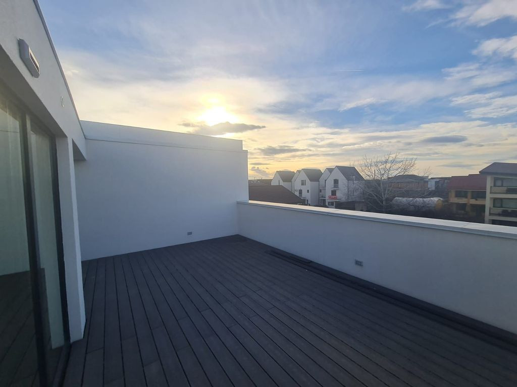 Dezvoltator, comision 0%. Fotografii reale(obtinute cu permisiunea proprietarului), dintr-o vila identica, data deja in folosinta(alegerea finisajelor si desingnul interior, apartine intru totul proprietarului vilei respective. Preț: 240000 euro plus TVA 21% adica 290400euro. Daca se achiziționează pe societate comercială nu se mai plătește TVA, adica pretul de vanzare fiind de 240000euro. -Casa individuala(stil mediteranean) cu regim de inaltime P+1+ Terasă, cuplate două câte două, la calcan(fiecare are perete separat cu izolatie intre cei doi pereti, nu exista pereti comuni). - Fundație separată, pereți separați, dubli, cu rost de dilatare (polistiren) între ziduri. Pe acte este trecută casă individuală, nu apartament ca în cazul duplexurilor. -Structură cu zidărie din cărămidă portantă, seismică. - fundație 2.10 m, hidroizolată și termoizolată de la talpa casei -Branșamente la toate utilitățile, gaz, curent trifazic, canalizare, apă, internet-tv, cu contori separați pentru fiecare casă. - Stradă asfaltată și iluminată -Tâmplărie gri antracit Salamander 7 camere cu trei garnituri, sticlă tripan, low-e+4 season, bandă perimetrală la tocurile tâmplăriei, la interior și exterior, pentru etanșare, termoizolație și hidroizolație ferestre - Încălzire în pardoseala cu termostate smart în fiecare cameră, cu touchscreen și acționare la distanță prin internet, cu aplicație. -Casa se preda la cheie, la gata, cu tot cu finisaje, garduri, branșamente, amenajarea proprietății și a ansamblului. - Poarta intrare ansamblu cu automatizare (telecomandă și gps, apel telefonic) - Cartea construcției Predare in maxim 3 luni de la contractare.