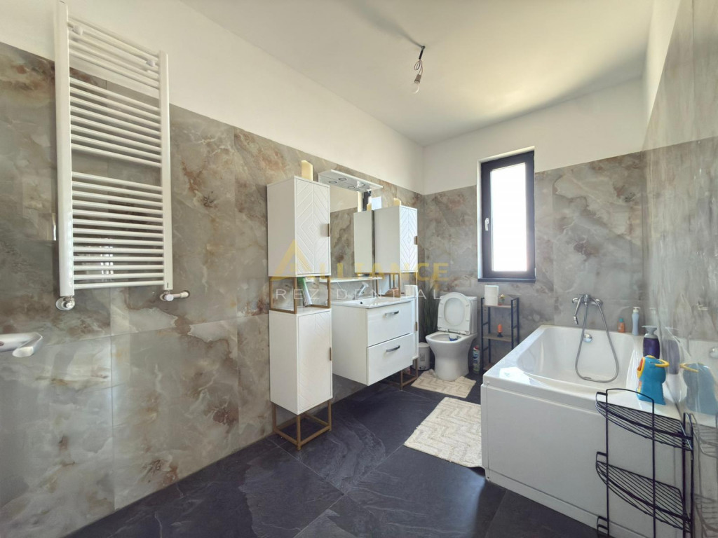 Daca iti doresti o locuinta moderna, bine compartimentata si pregatita pentru nevoile unei familii, aceasta proprietate poate fi alegerea potrivita. Amplasata pe un teren de 405 mp, vila este construita pe regim P 1E si imbina perfect spatiile generoase cu functionalitatea de zi cu zi. Se vinde complet mobilata si utilata, exact ca in poze, fiind gata pentru mutare imediata. Cum este organizata casa: Parter: - Living spatios, luminos, cu acces direct catre terasa ndash; locul ideal pentru relaxare sau timp petrecut alaturi de cei dragi - Bucatarie inchisa, complet mobilata si utilata - Baie moderna Etaj: - 3 dormitoare confortabile, complet mobilate - Baie spatioasa, deservind zona de noapte - Hol aerisit, cu acces facil catre toate incaperile Avantaje care fac diferenta: - Incalzire in pardoseala cu centrala pe gaz ndash; confort ridicat si costuri optimizate - Geamuri tripan ndash; izolatie excelenta si liniste in interior - Curte proprie de 405 mp ndash; spatiu suficient pentru gradina, terasa sau zona de relaxare Locuinta este ideala pentru cei care cauta un echilibru intre liniste, confort si acces rapid catre oras. Pret: 159.900 euro Pentru mai multe informatii si programarea unei vizionari: Olteanu Octavian ndash; Alliance Rezidential Telefon: 0739 922 937